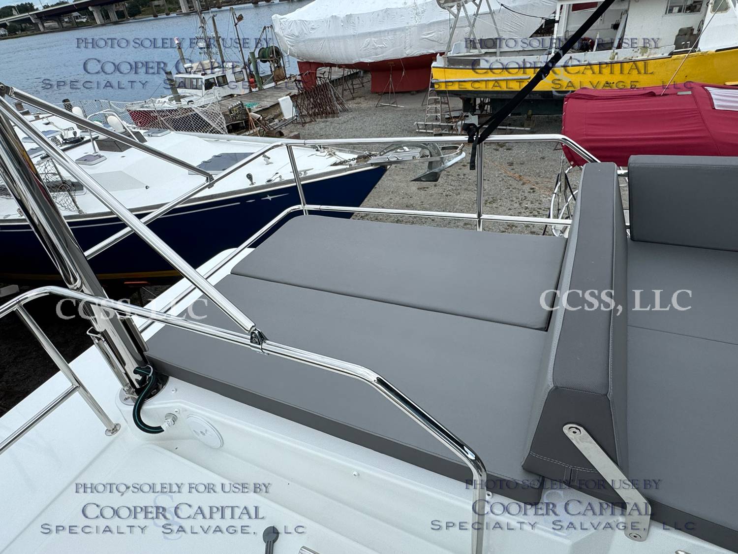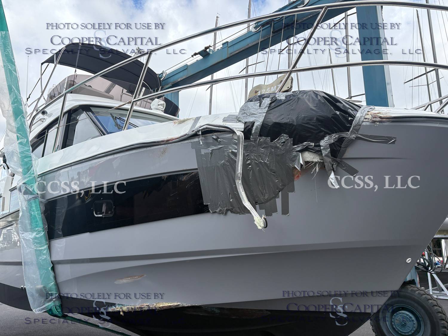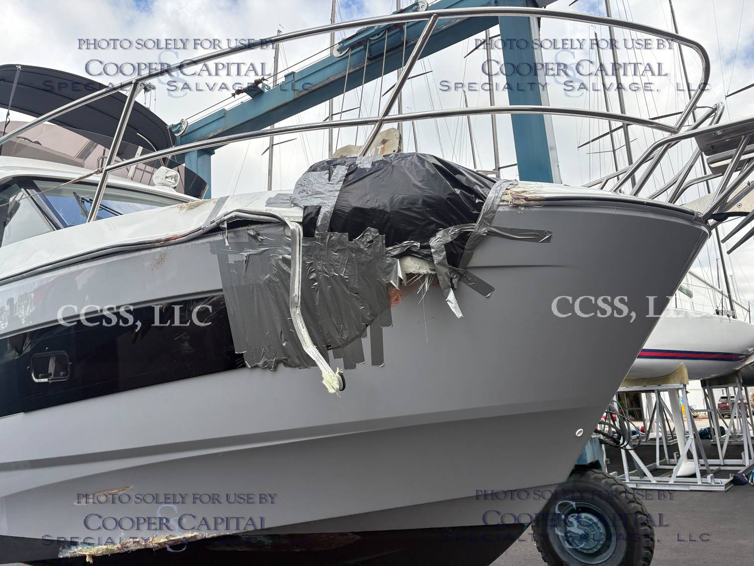 Vessel struck a channel marker on the starboard side bow. This vessel is in like new condition. Everything appears to be in good working order. The stern thruster is missing. The engines and bow thruster are reported to run, please scroll down to see videos.