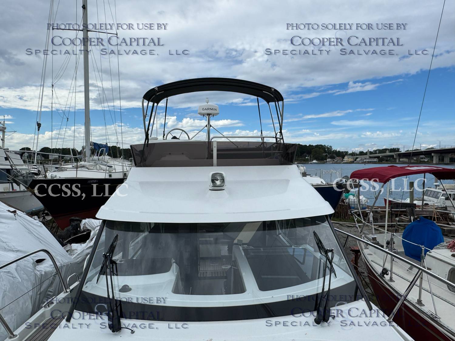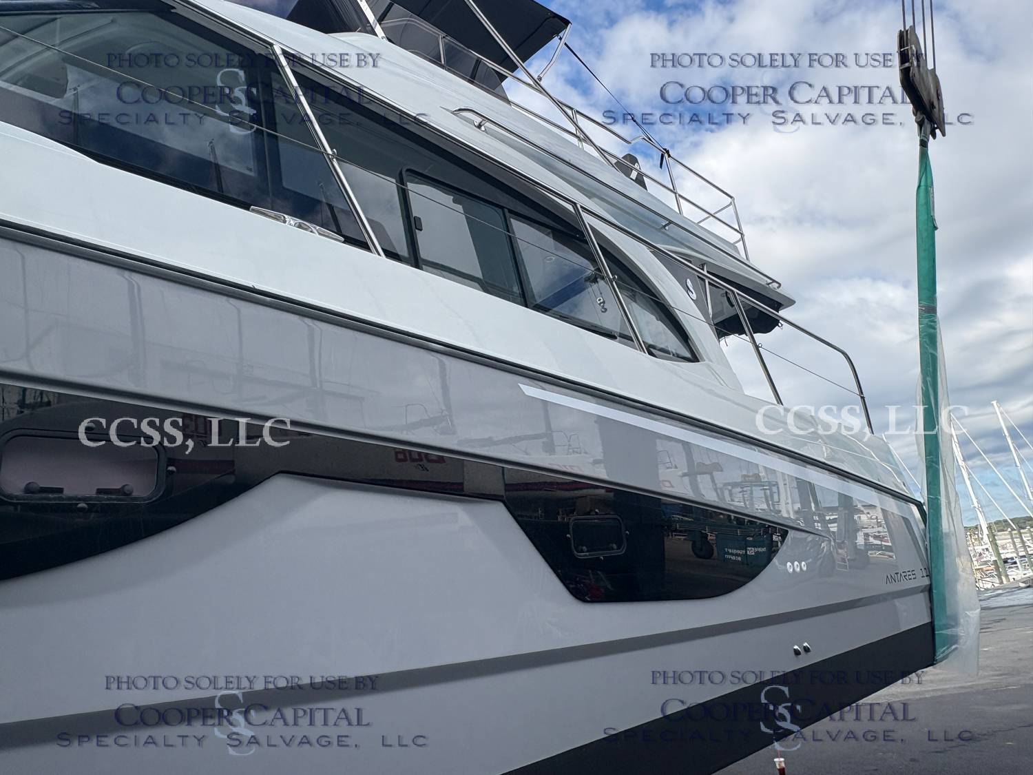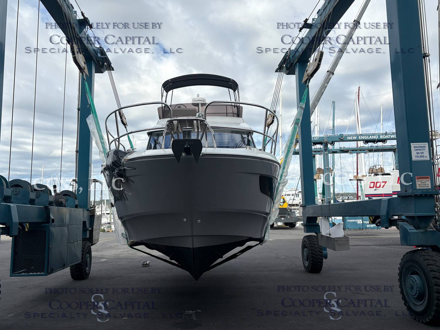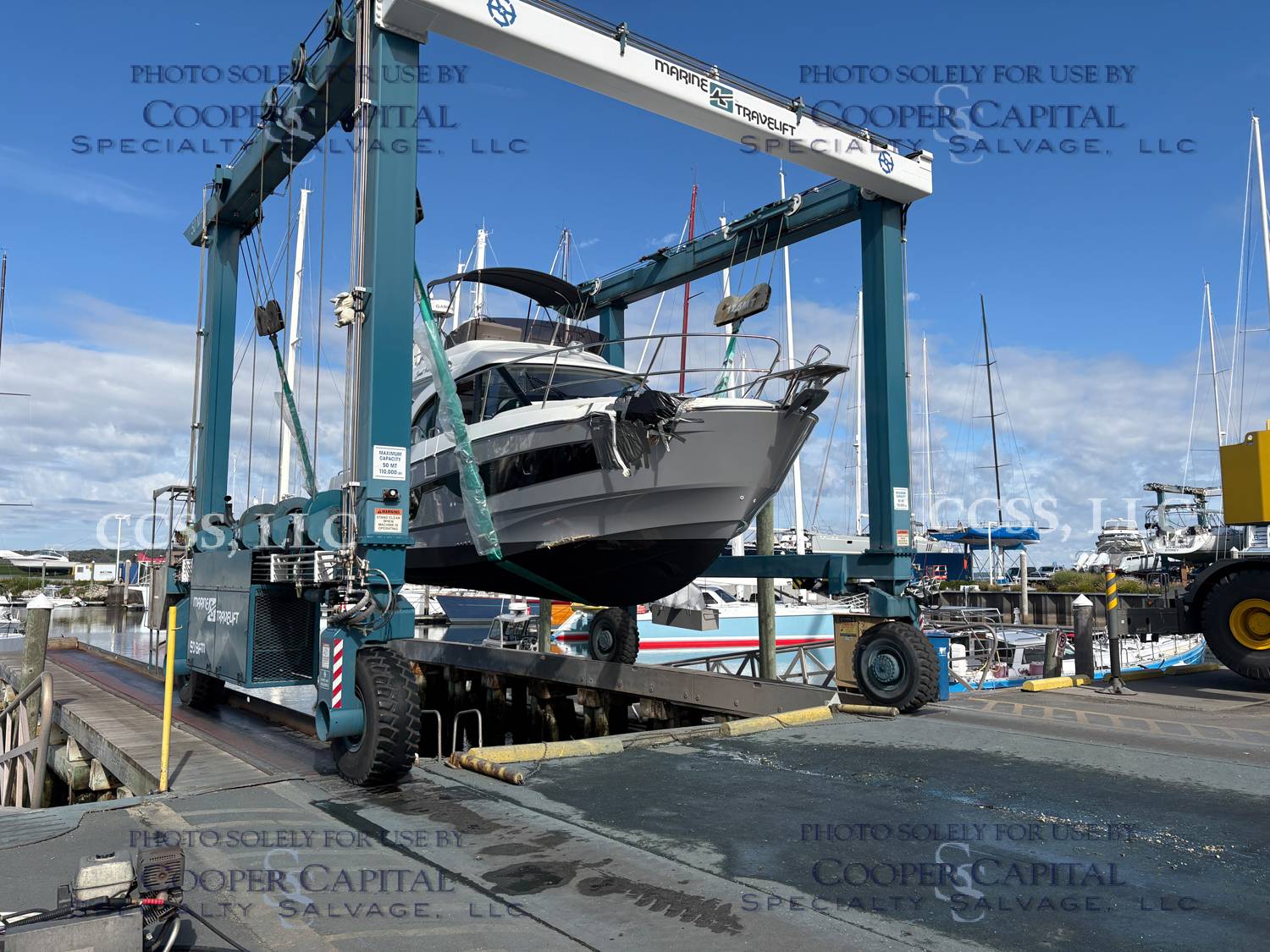 Vessel struck a channel marker on the starboard side bow. This vessel is in like new condition. Everything appears to be in good working order. The stern thruster is missing. The engines and bow thruster are reported to run, please scroll down to see videos.