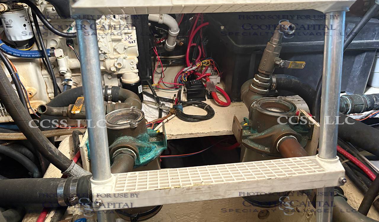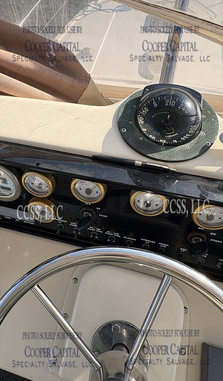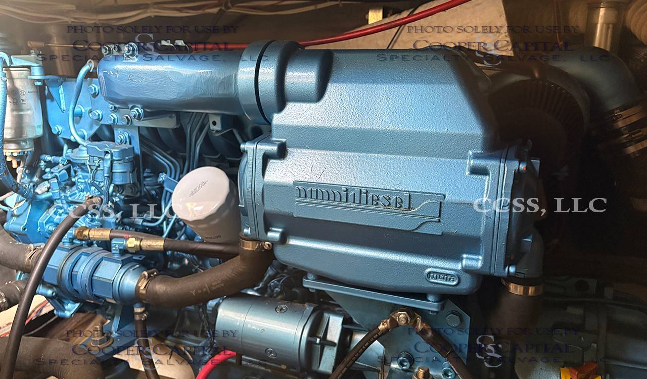 The vessel sustained damaged to the starboard side, rub rail and swim platform due to another vessel breaking free from its mooring. The engines are reported to run well. The generator reportedly starts and runs well and puts out power. Please scroll down to see videos.