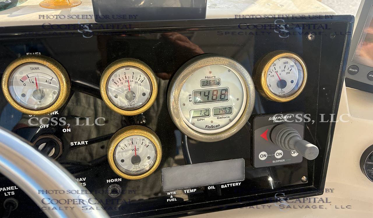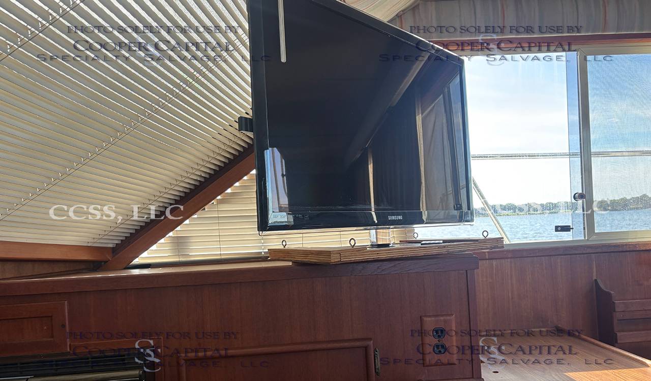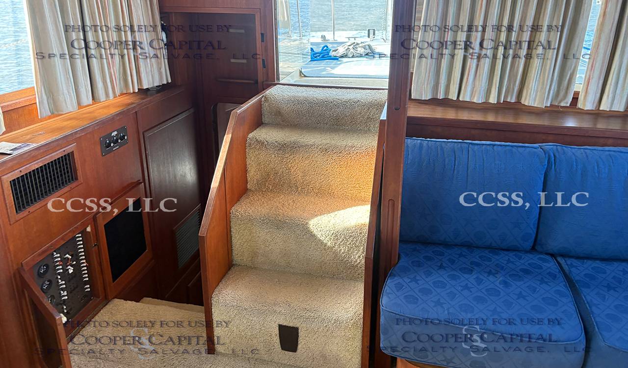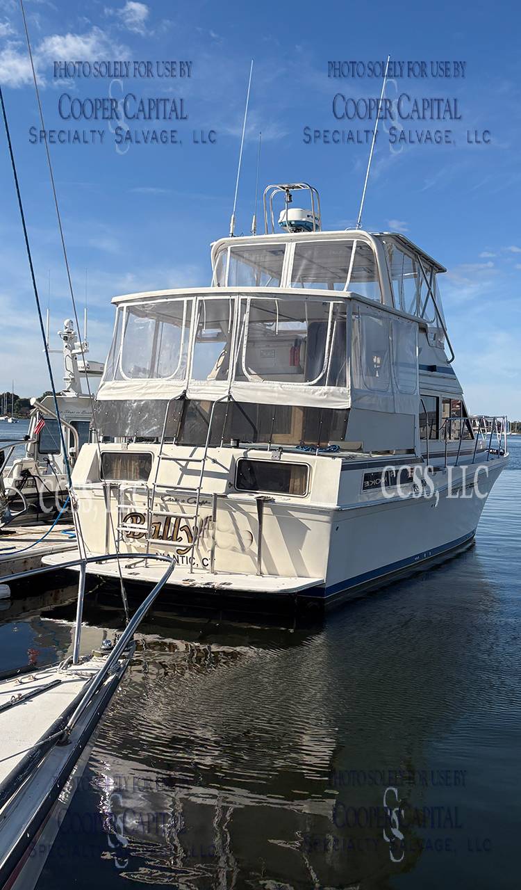 The vessel sustained damaged to the starboard side, rub rail and swim platform due to another vessel breaking free from its mooring. The engines are reported to run well. The generator reportedly starts and runs well and puts out power. Please scroll down to see videos.
