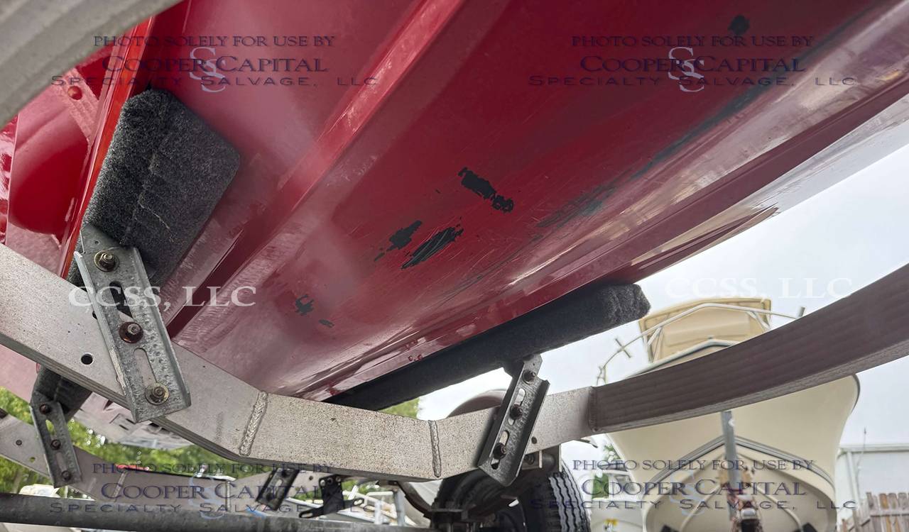 Vessel was being driven onto an EZ dock when one of the metal rods flipped out and caused damage to the hull. Please scroll down to see a video of the engine running.