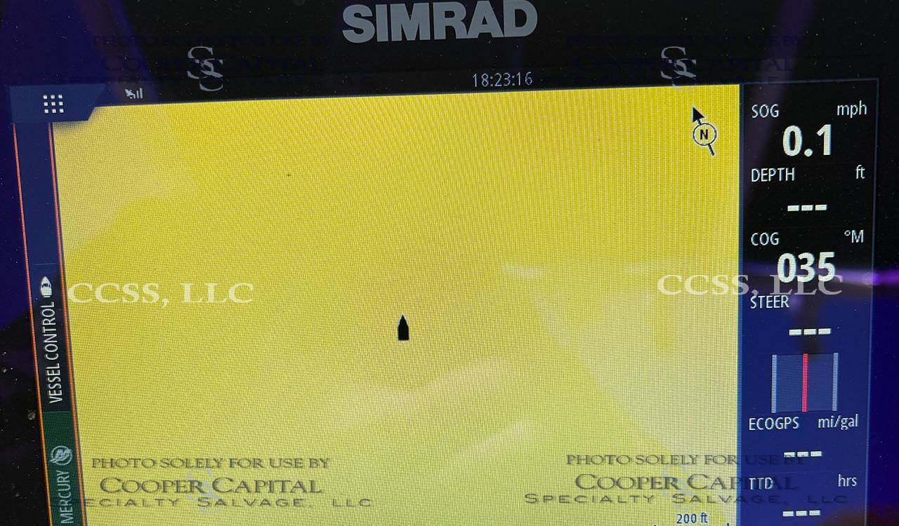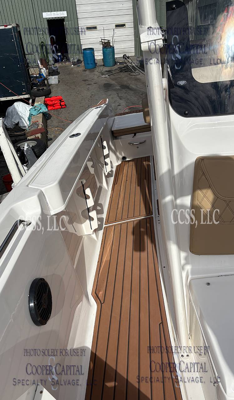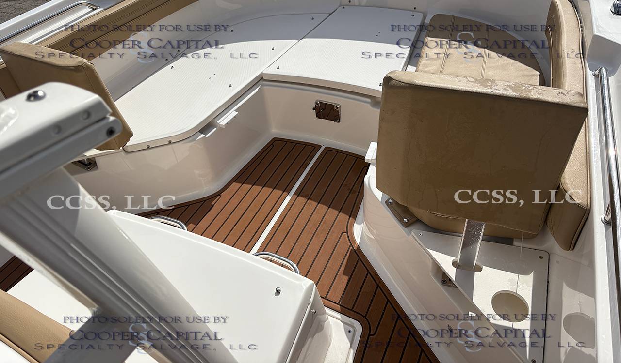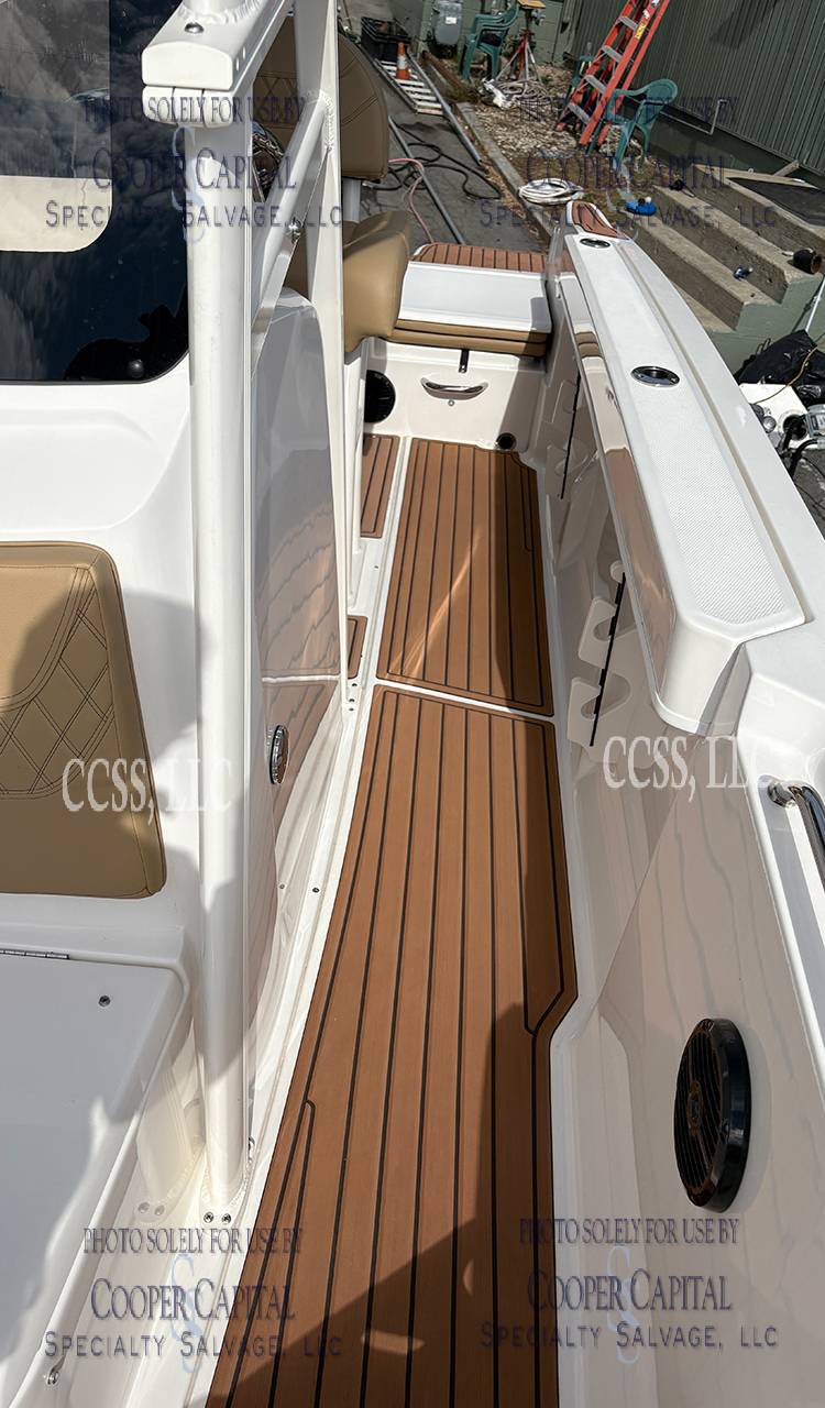 Vessel broke free and washed up on a beach. Does not appear to have water intrusion. The engine is reported to start and run. Please scroll down to see videos. Missing the forward hatch & several cushions. There are scrapes and gouges throughout the hull bottom. Scapes on the starboard side hull Gell coat.