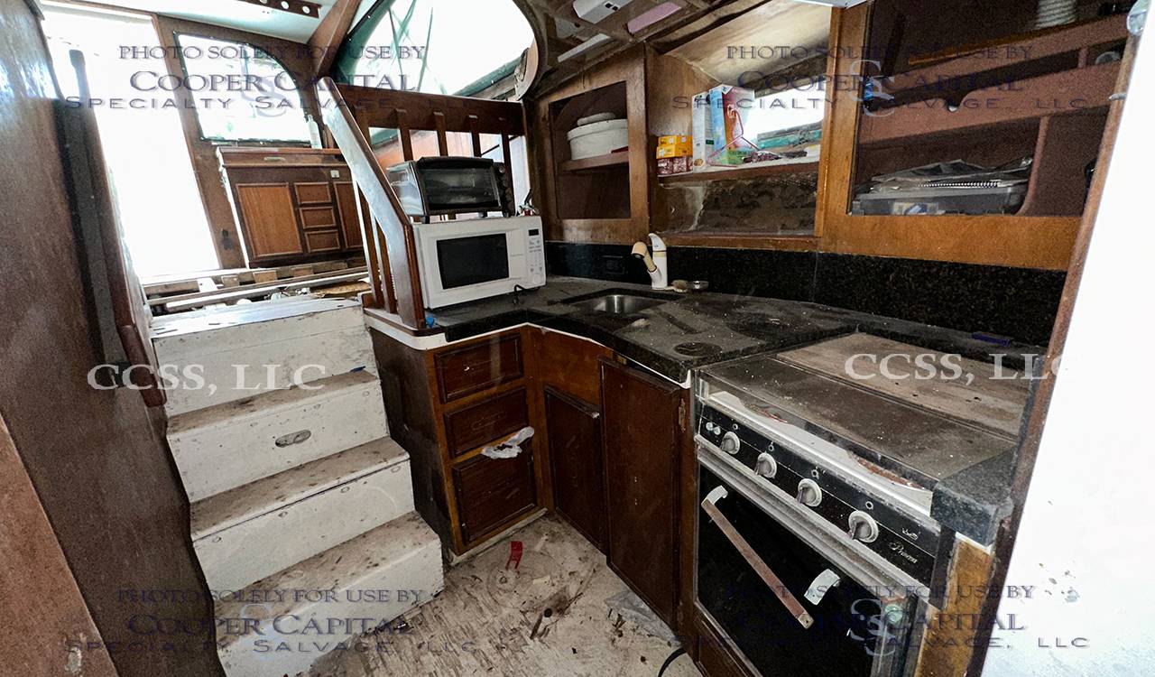 The starboard engine failed, and the previous owner chose not to fix or replace it. The previous owner abandoned the boat and now the yard is selling it.