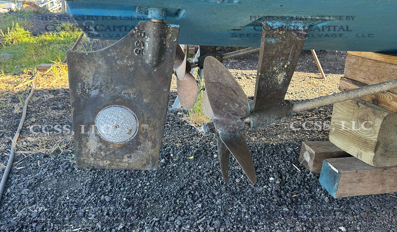 Vessel struck a large rope damaging the external drive train and port transmission. The engine is reported to be locked.