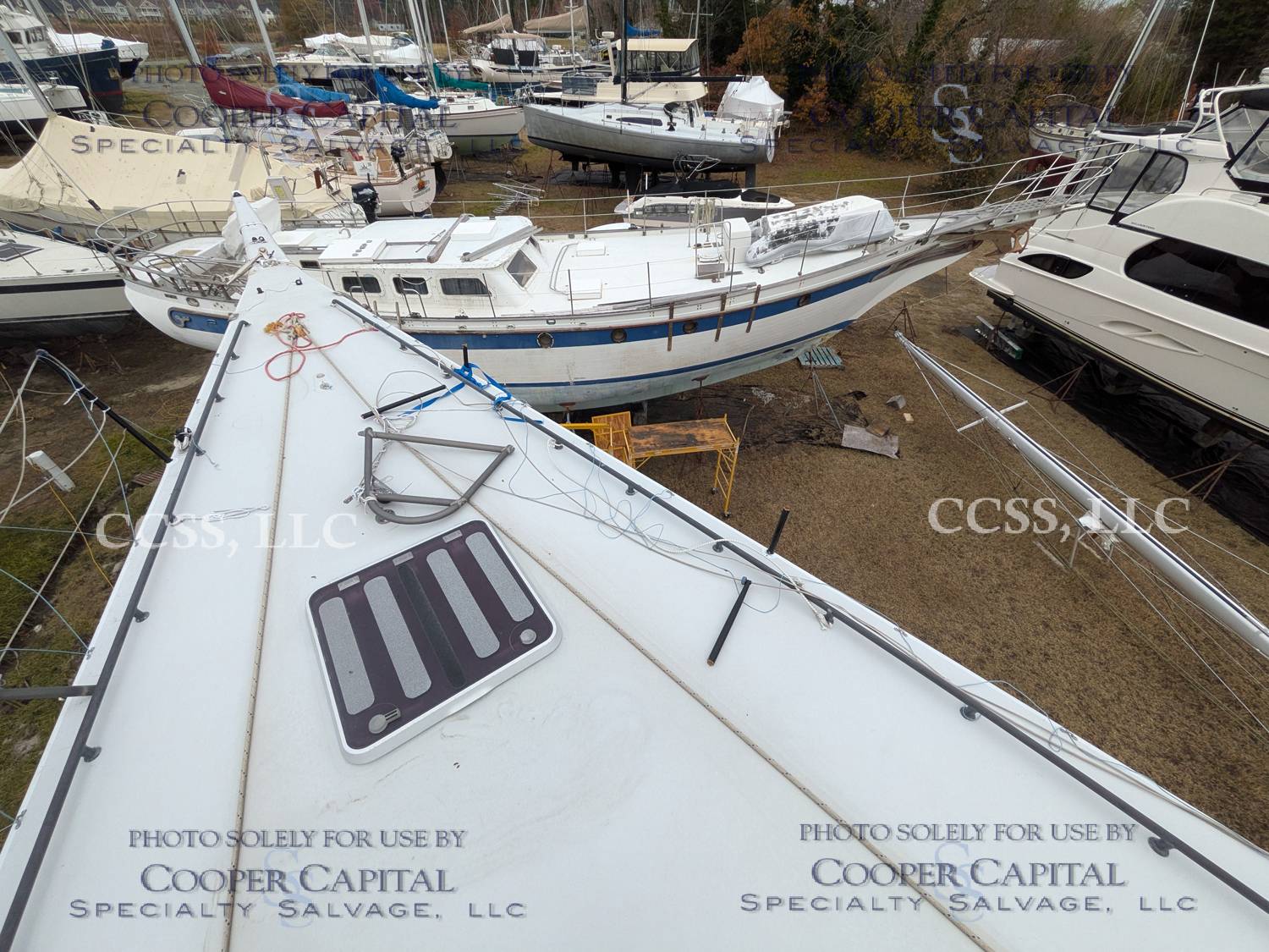 Overall winner of the 2002 Newport-Bermuda Race. Vessel was brought to the yard under its own power for some repairs to the fore stay attachment point and subsequently abandoned. The engines and other systems are currently winterized however there is no reason to believe the engine should not run.