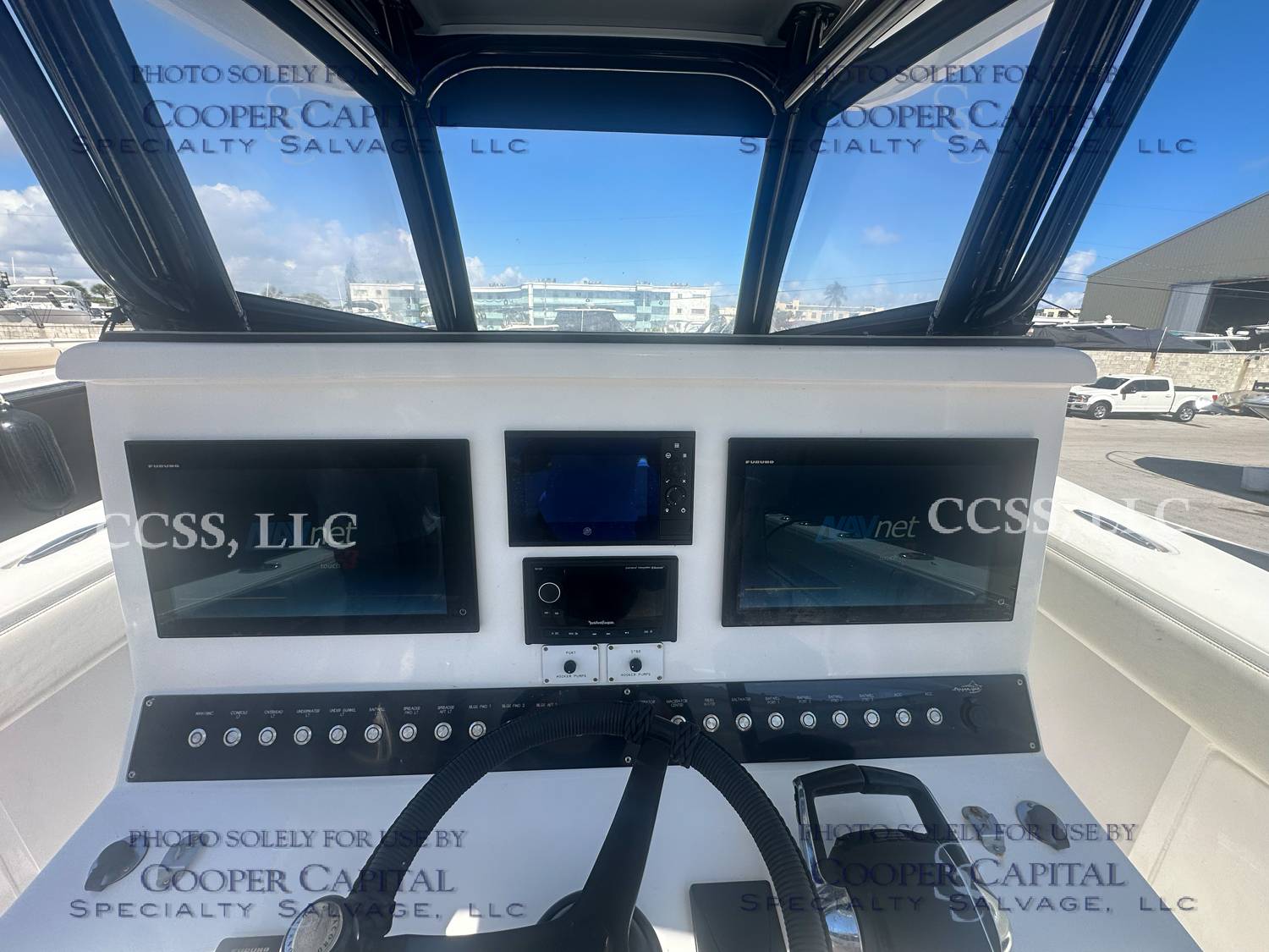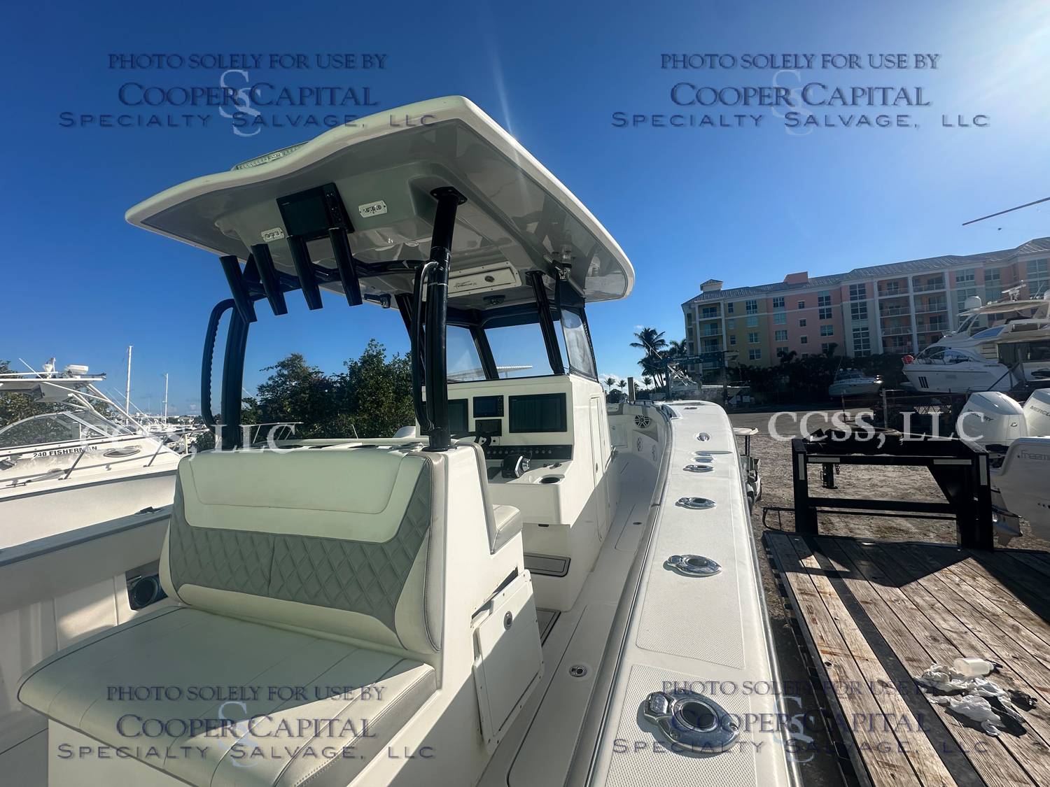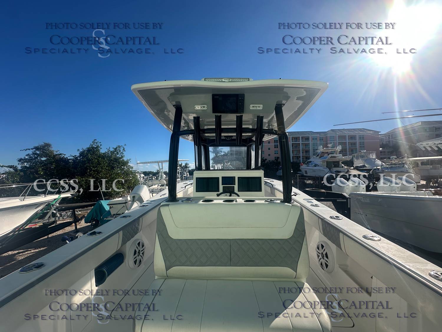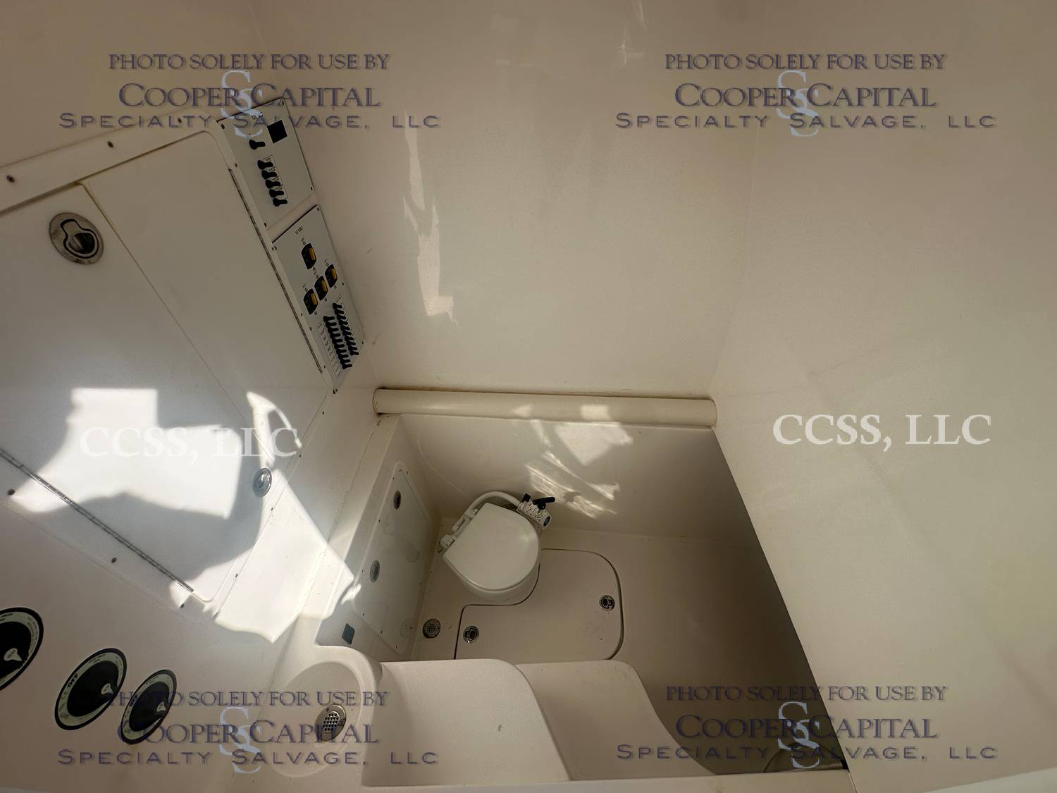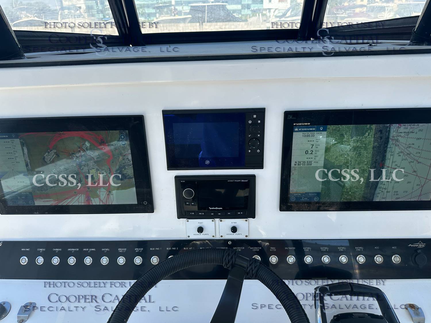 Vessel capsized onto the starboard side and flooded. Engines and electrical are salt water damaged. The engines are reported to be locked.
