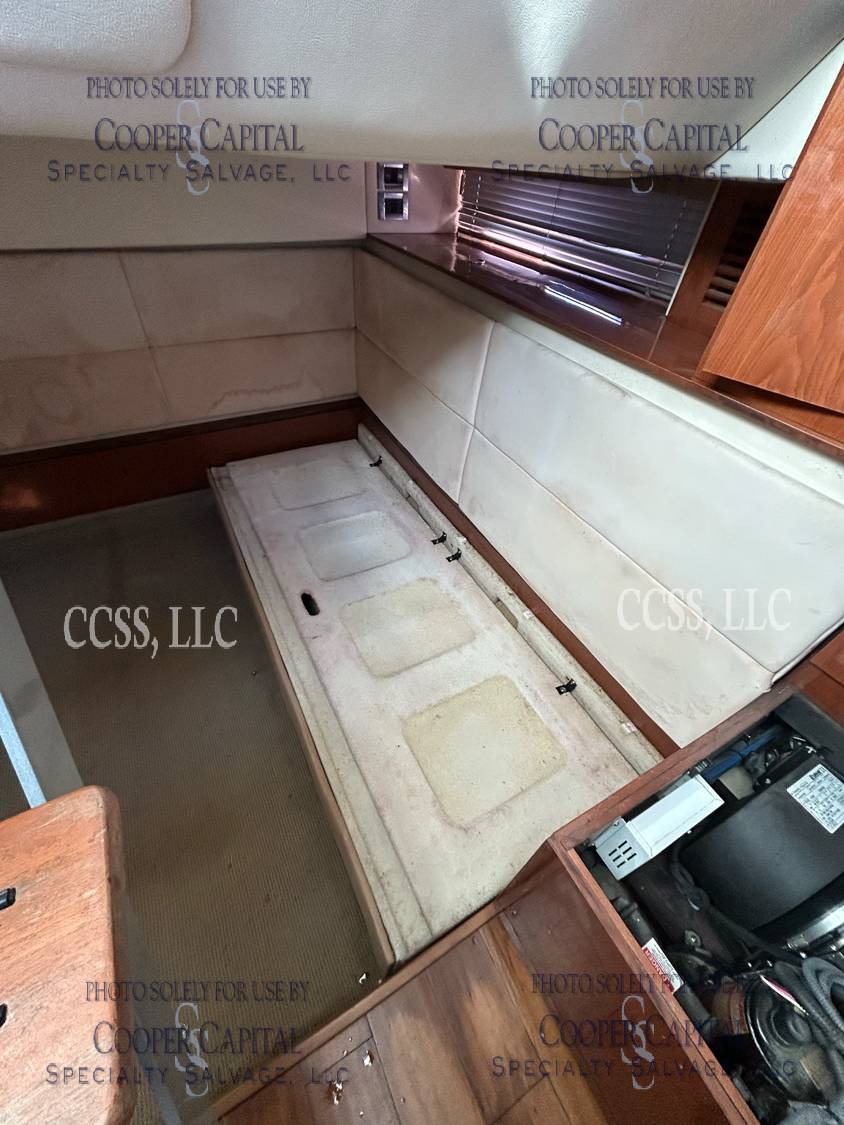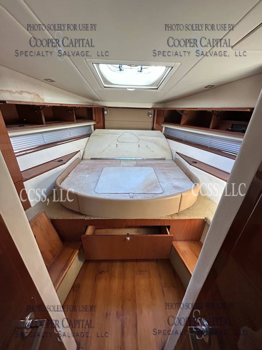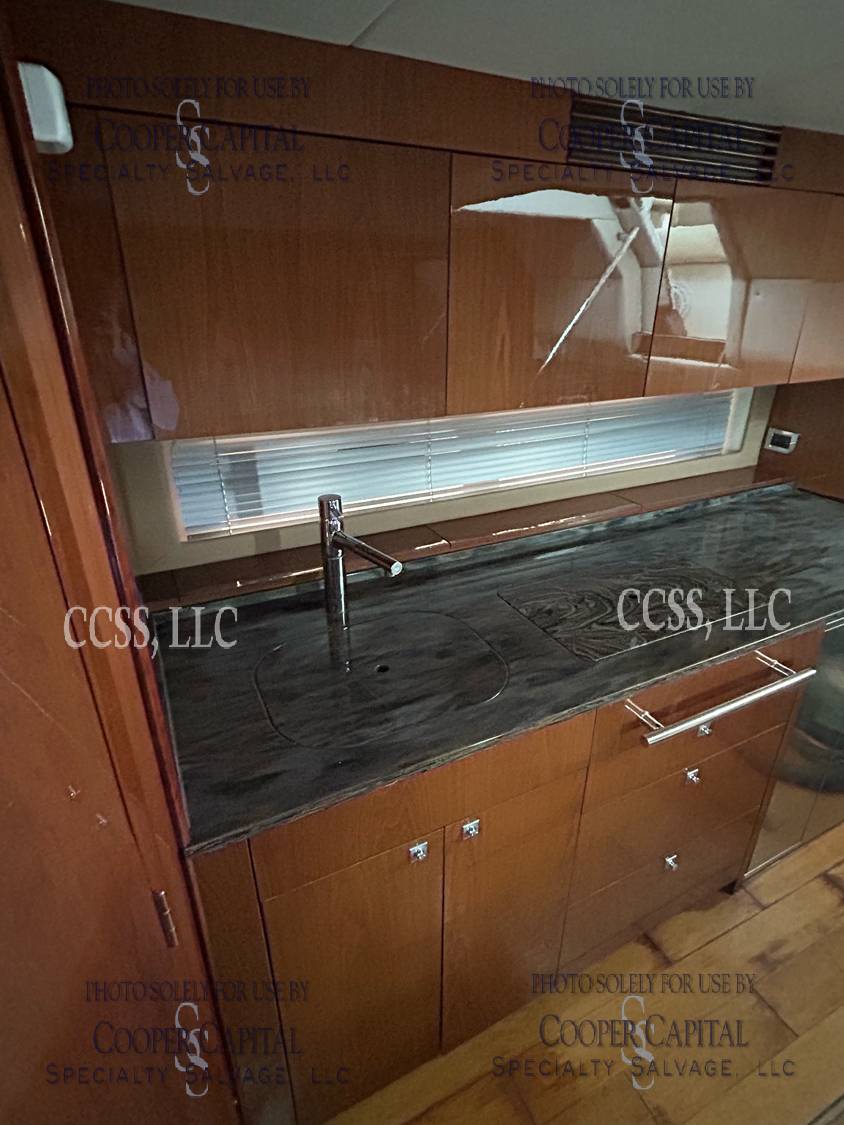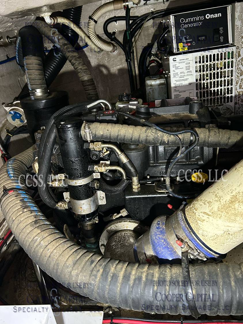 Vessel struck a submerged object and subsequently submerged. Engines, electrical, and soft goods are water damaged. The engines were pickled and run when the boat was raised.