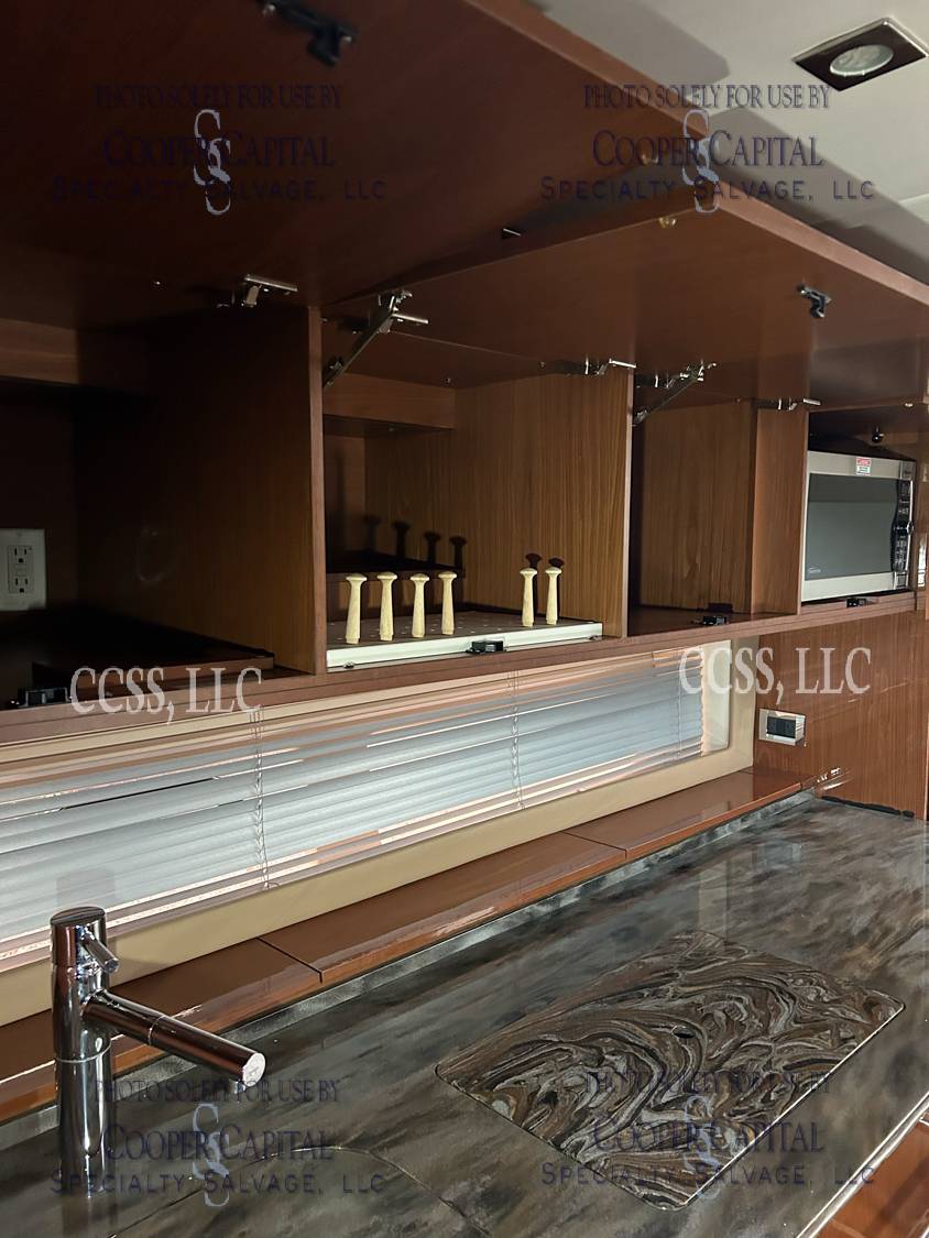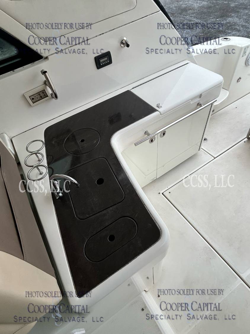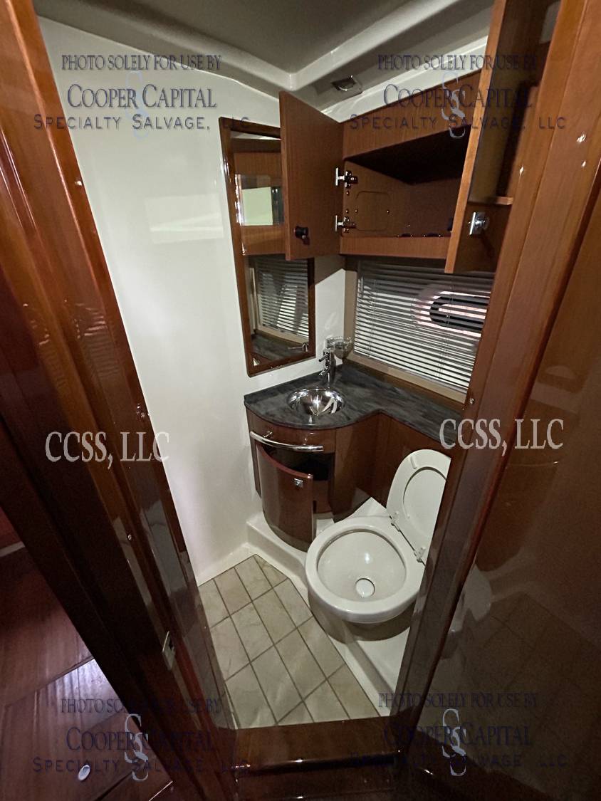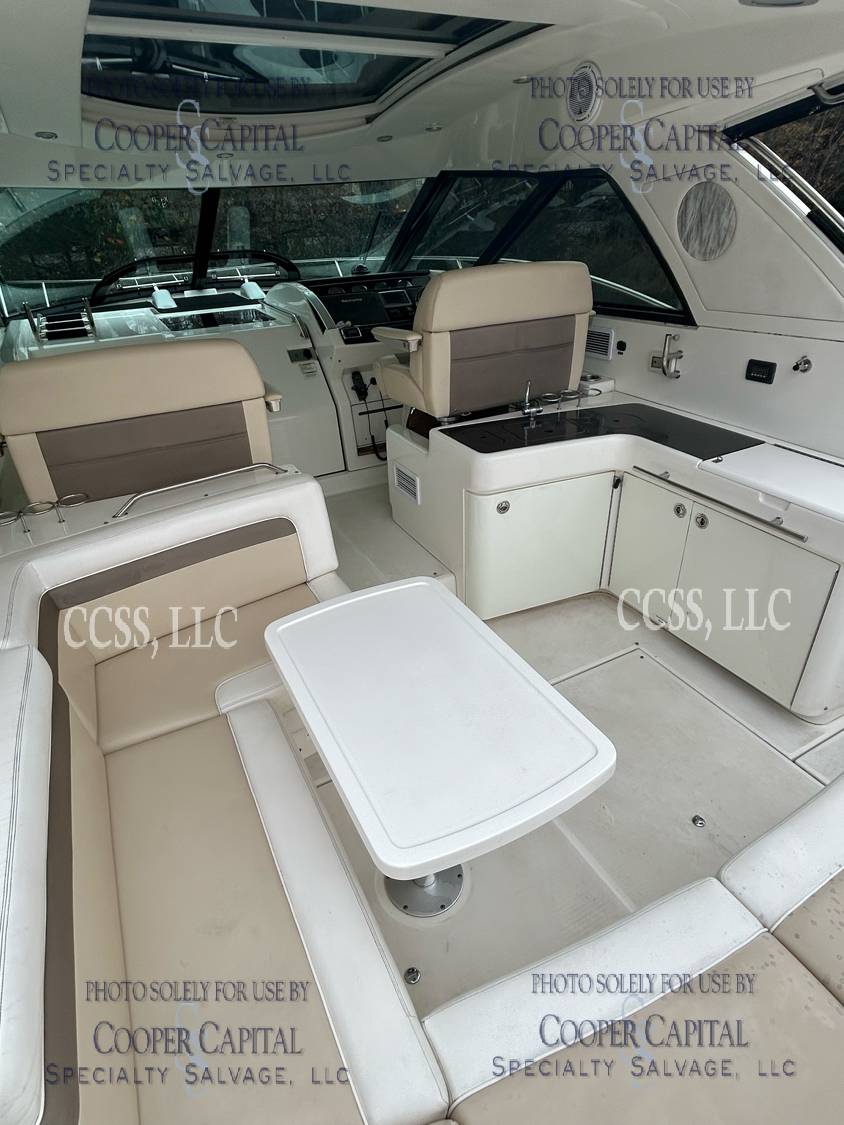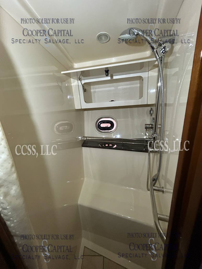 Vessel struck a submerged object and subsequently submerged. Engines, electrical, and soft goods are water damaged. The engines were pickled and run when the boat was raised.