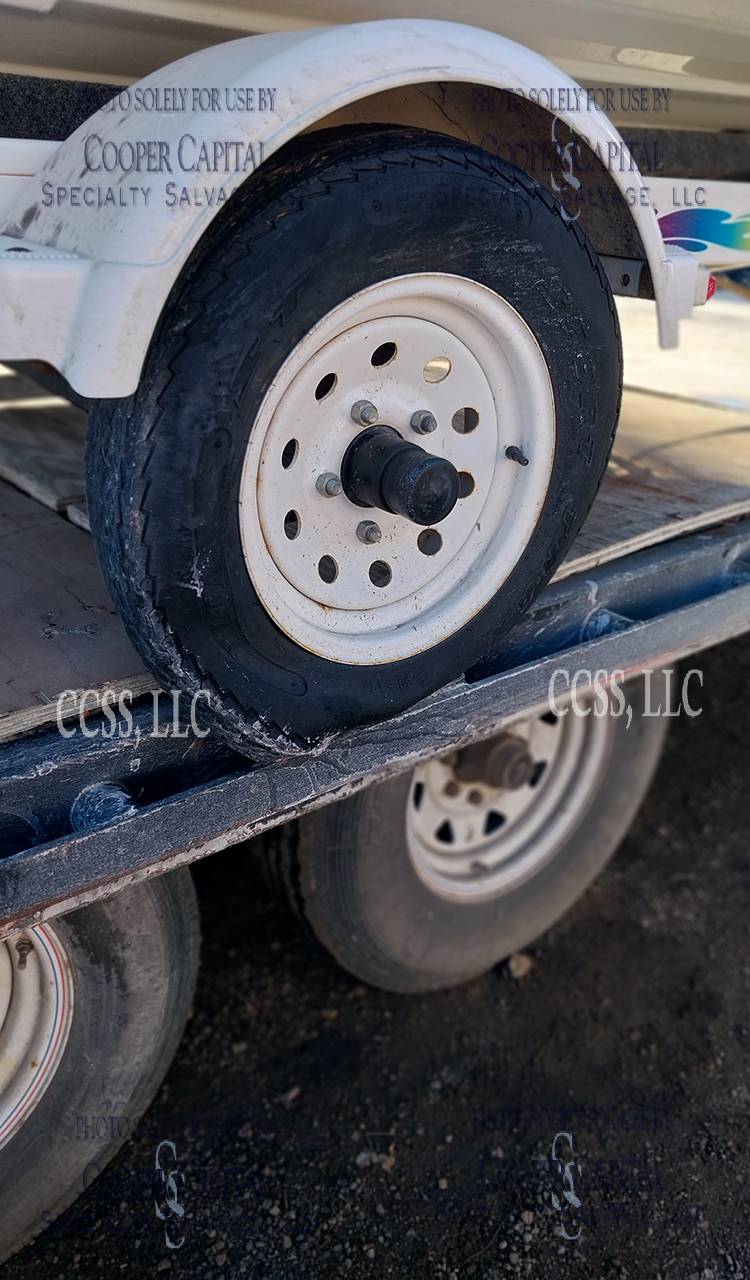 Vessel was being towed when the trailer went off the road. There is fiberglass damage throughout the hull. Engine status unknown. The trailer will be sold with no selling paperwork. Parts only.