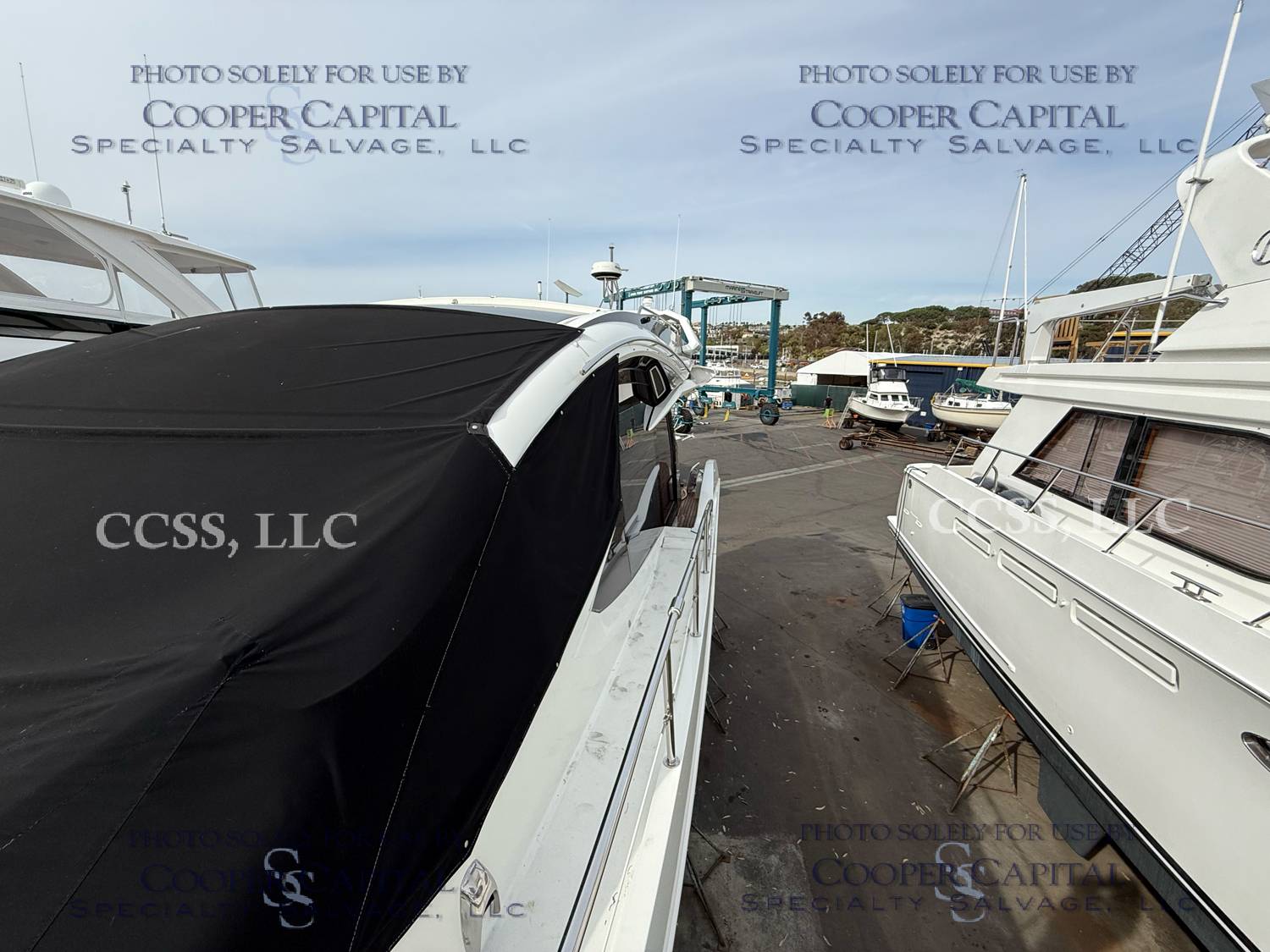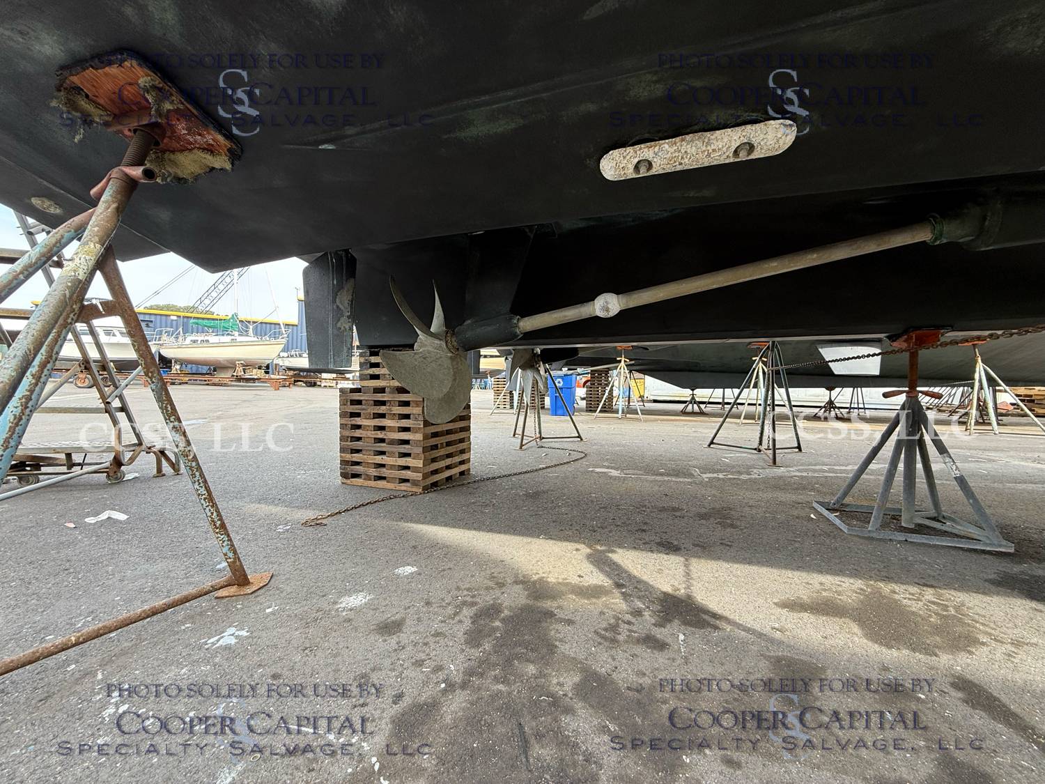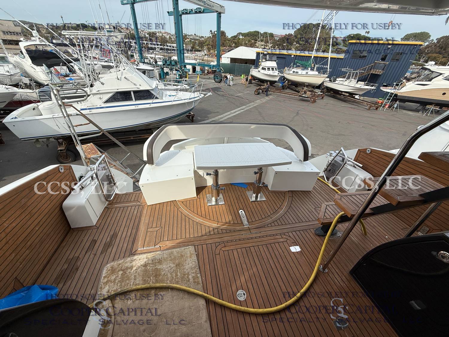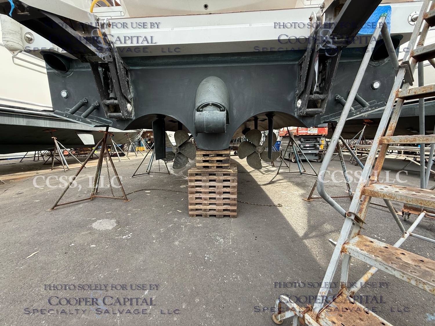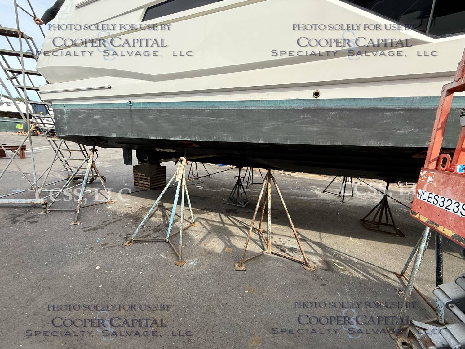Vessel was struck from behind causing fiberglass damage to the stern and swim platform. Please inspect the vessel to determine the full extent of the damage. There is no reason to believe the engines will not run.