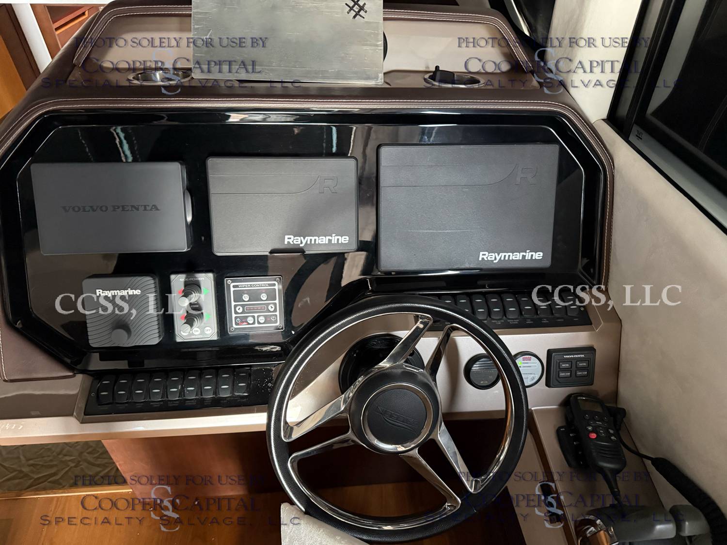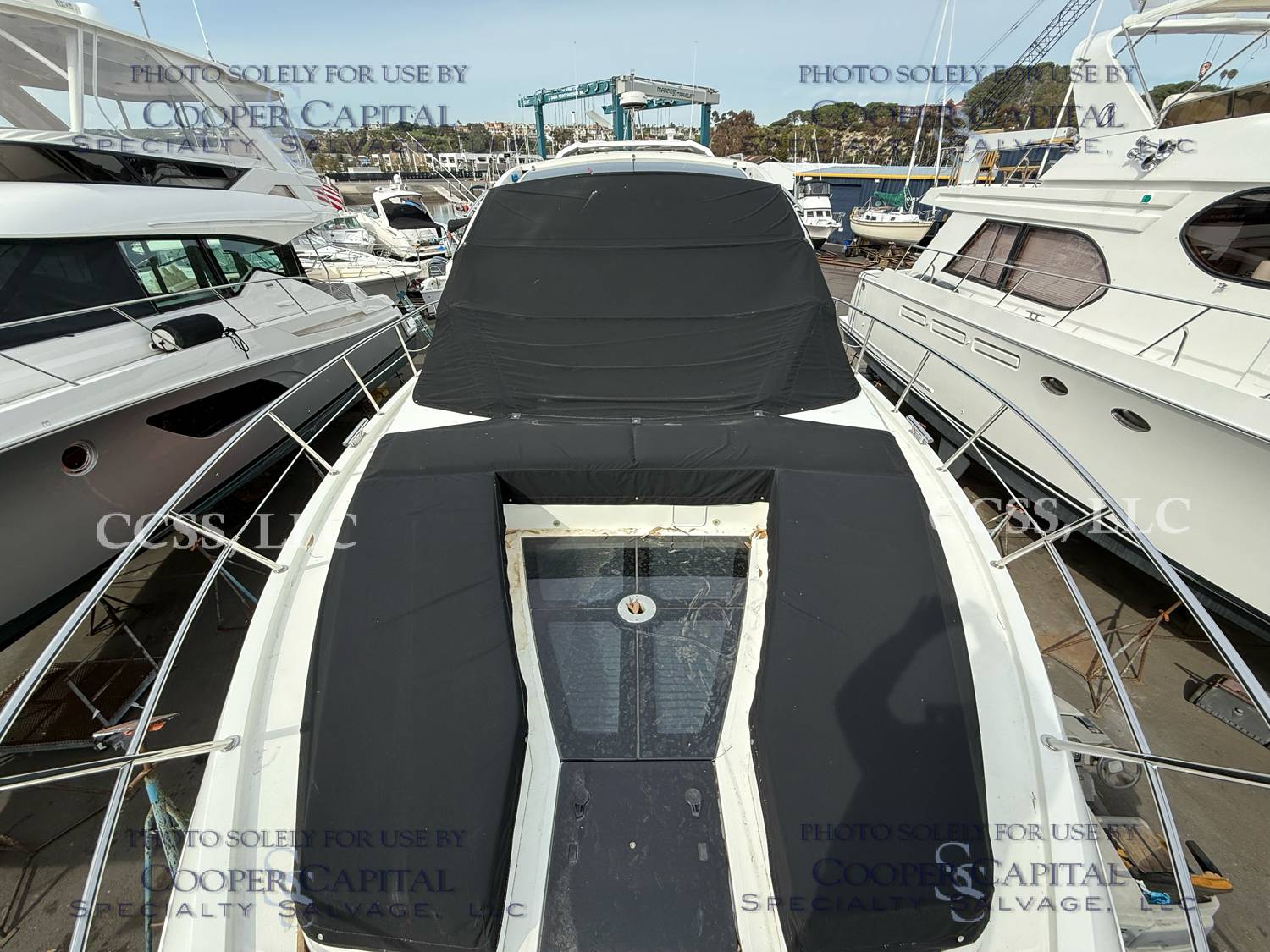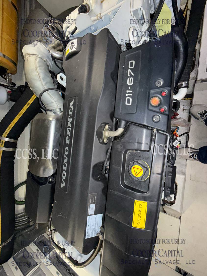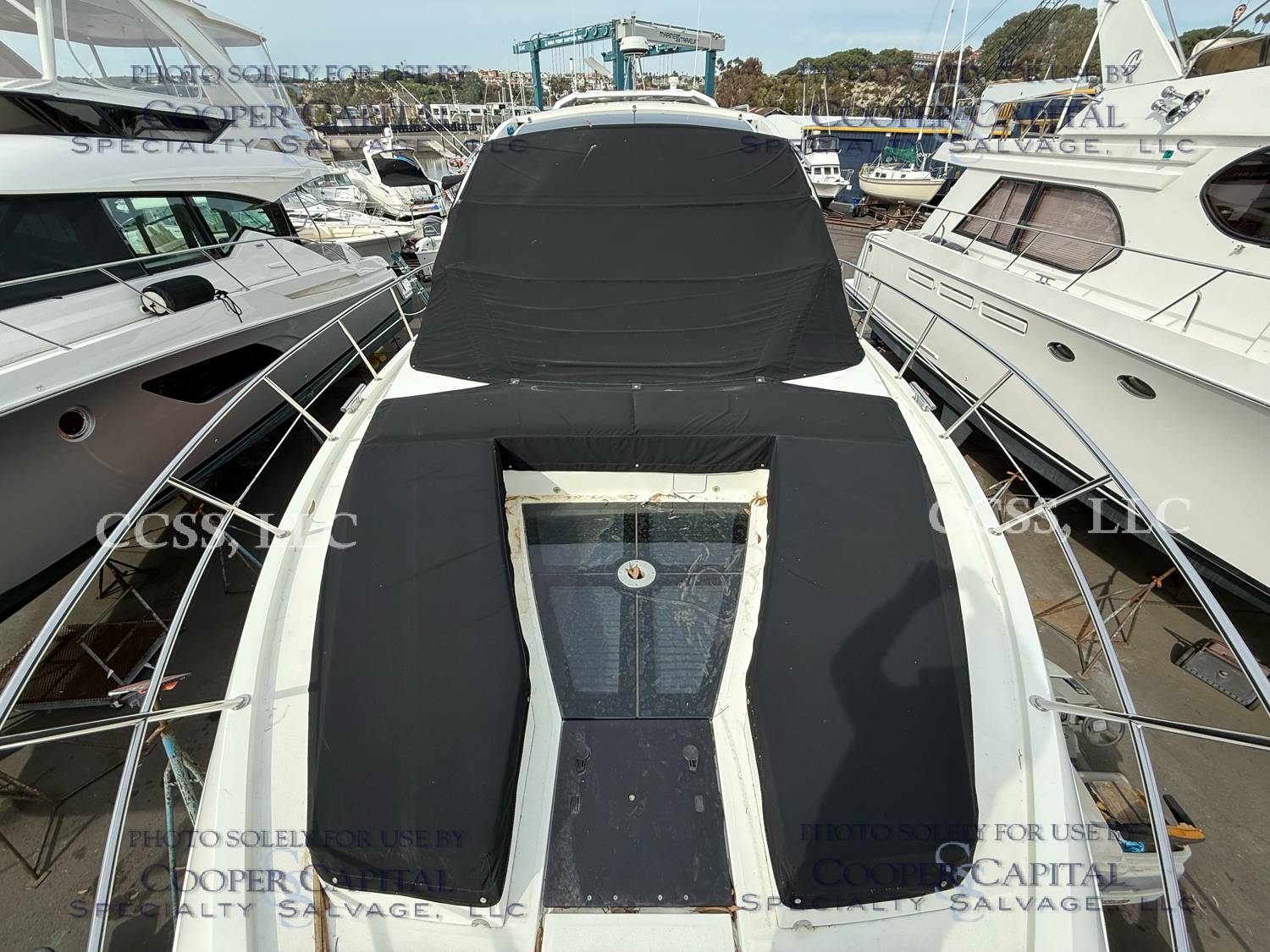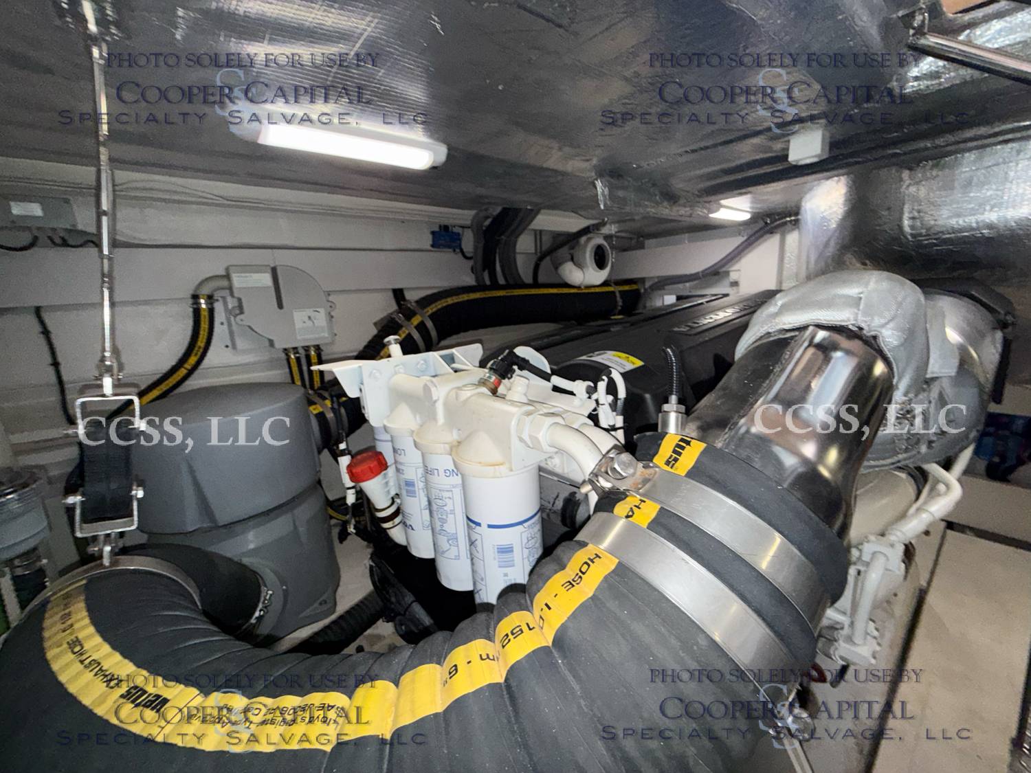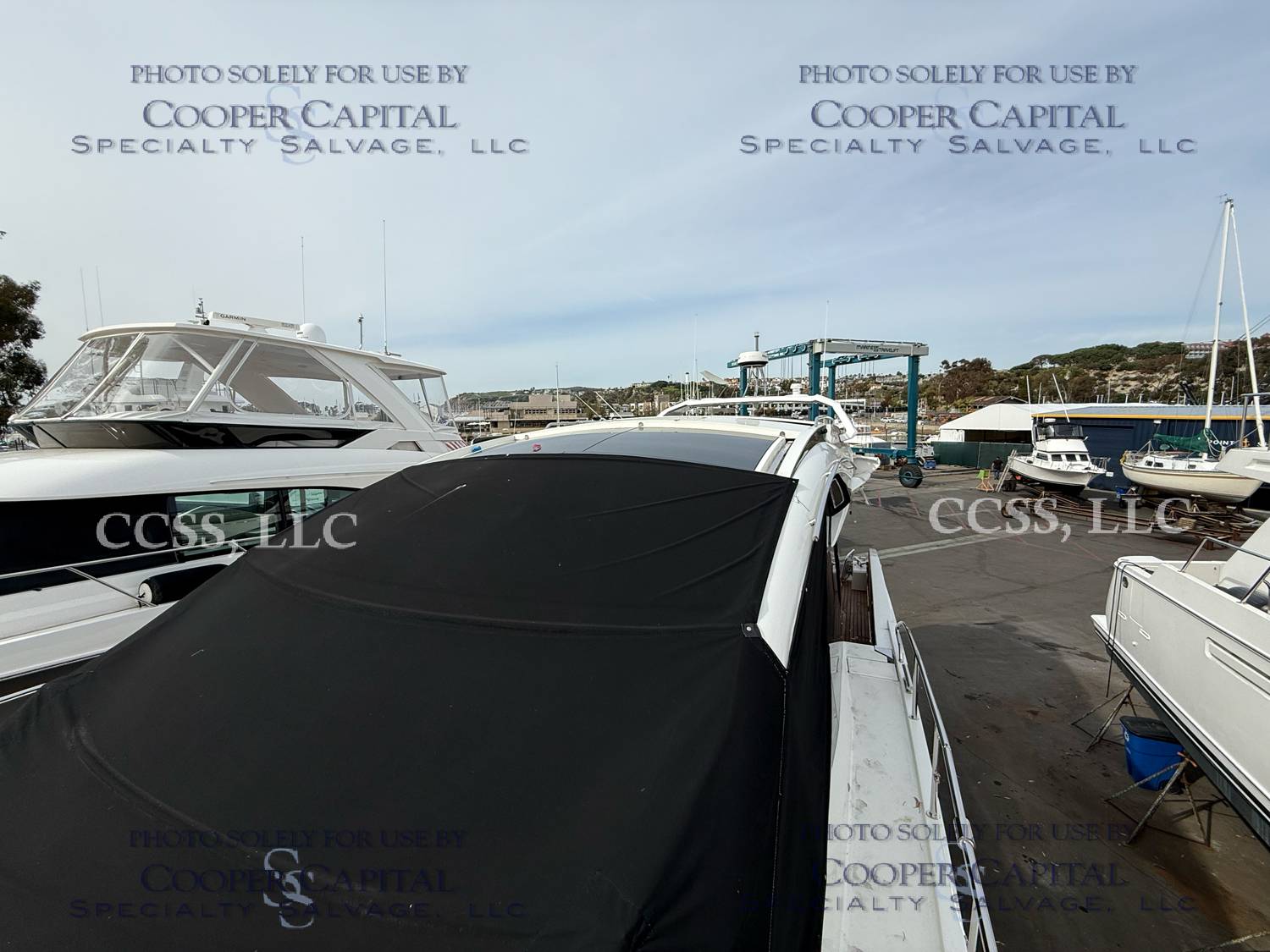 Vessel was struck from behind causing fiberglass damage to the stern and swim platform. Please inspect the vessel to determine the full extent of the damage. There is no reason to believe the engines will not run.
