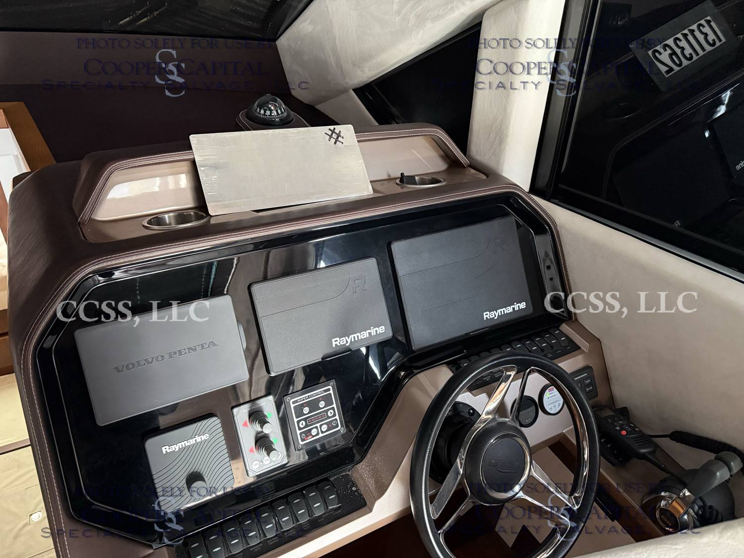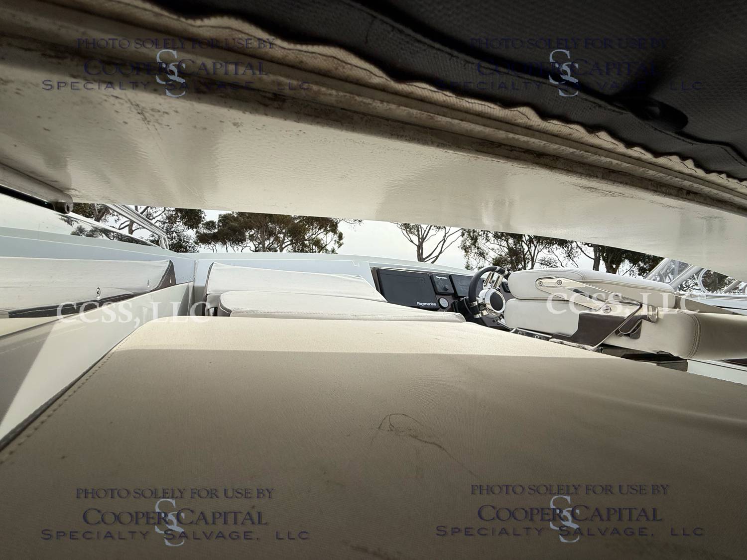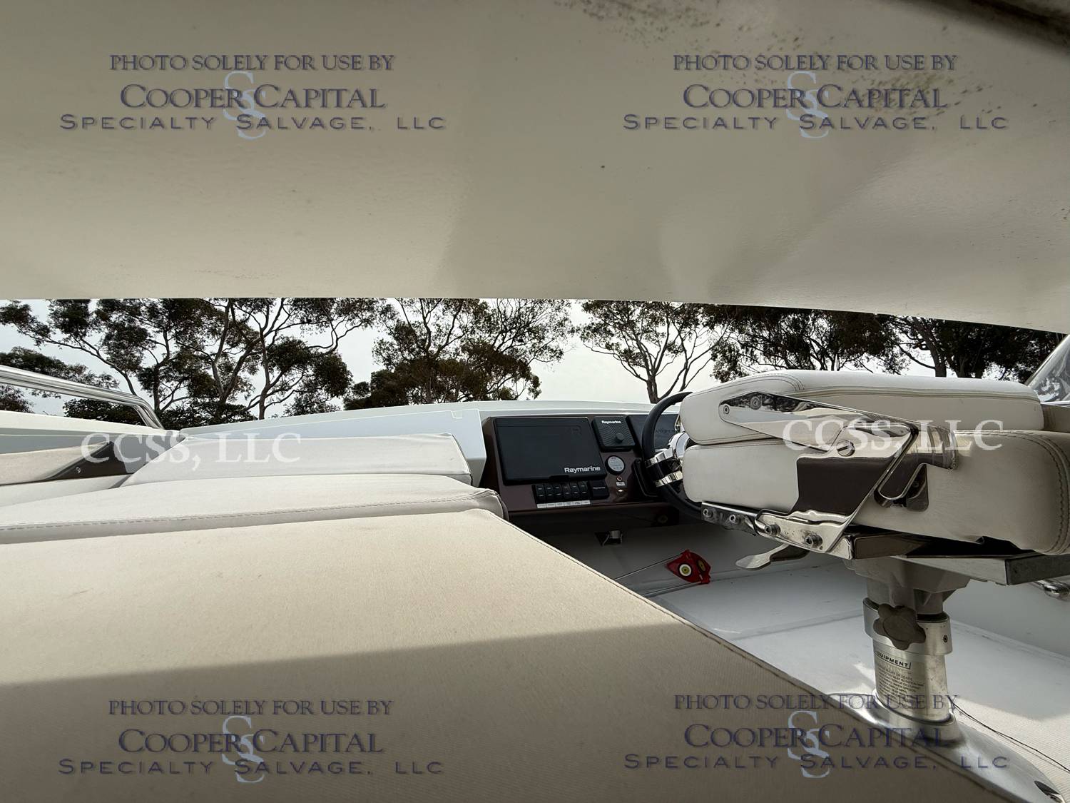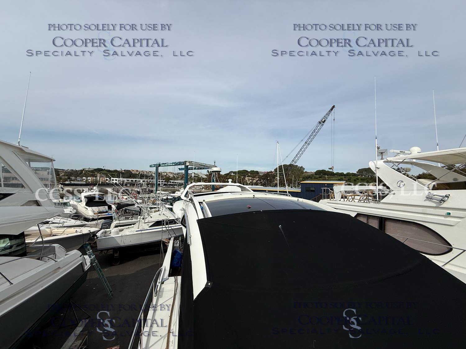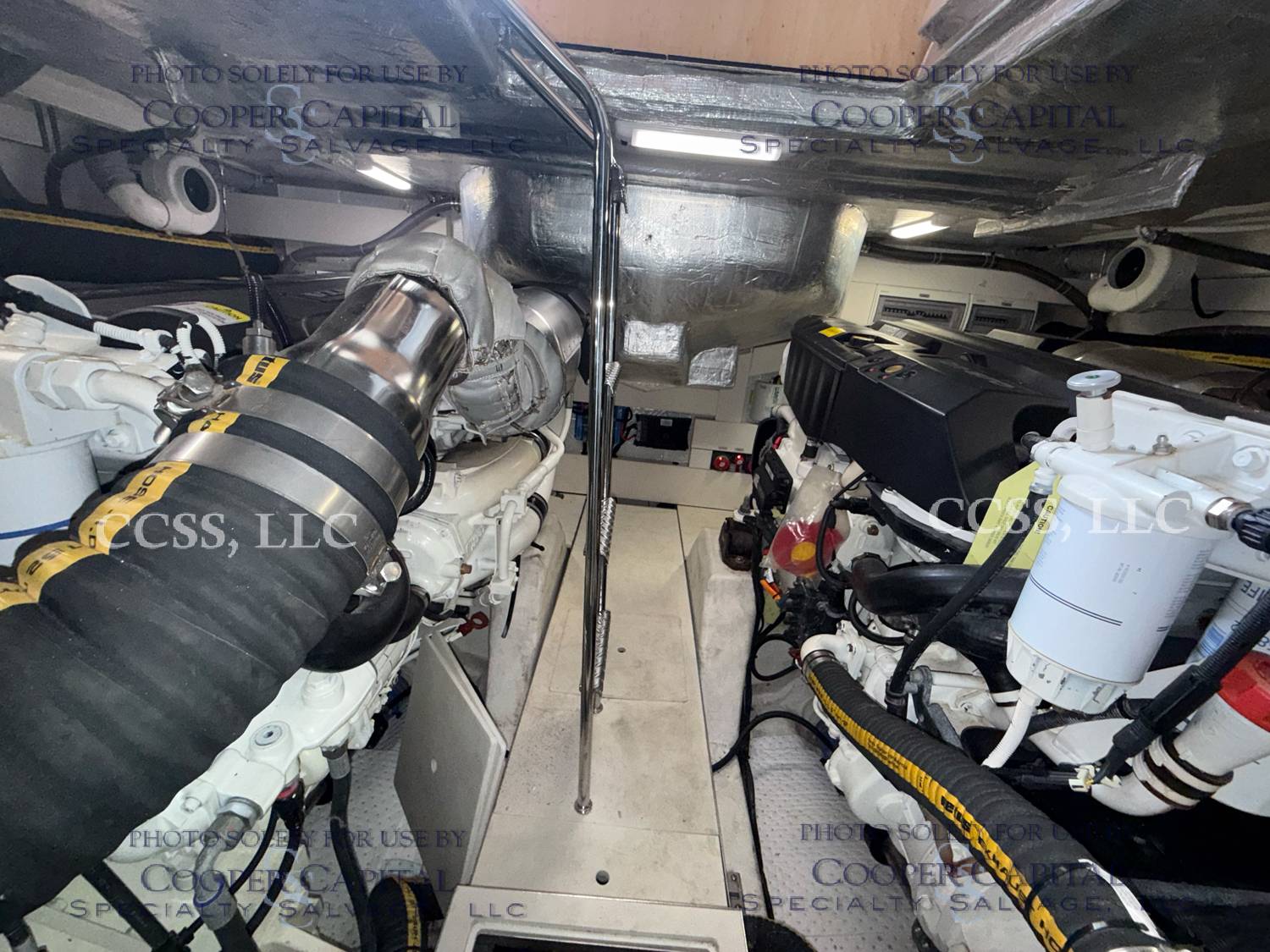 Vessel was struck from behind causing fiberglass damage to the stern and swim platform. Please inspect the vessel to determine the full extent of the damage. There is no reason to believe the engines will not run.