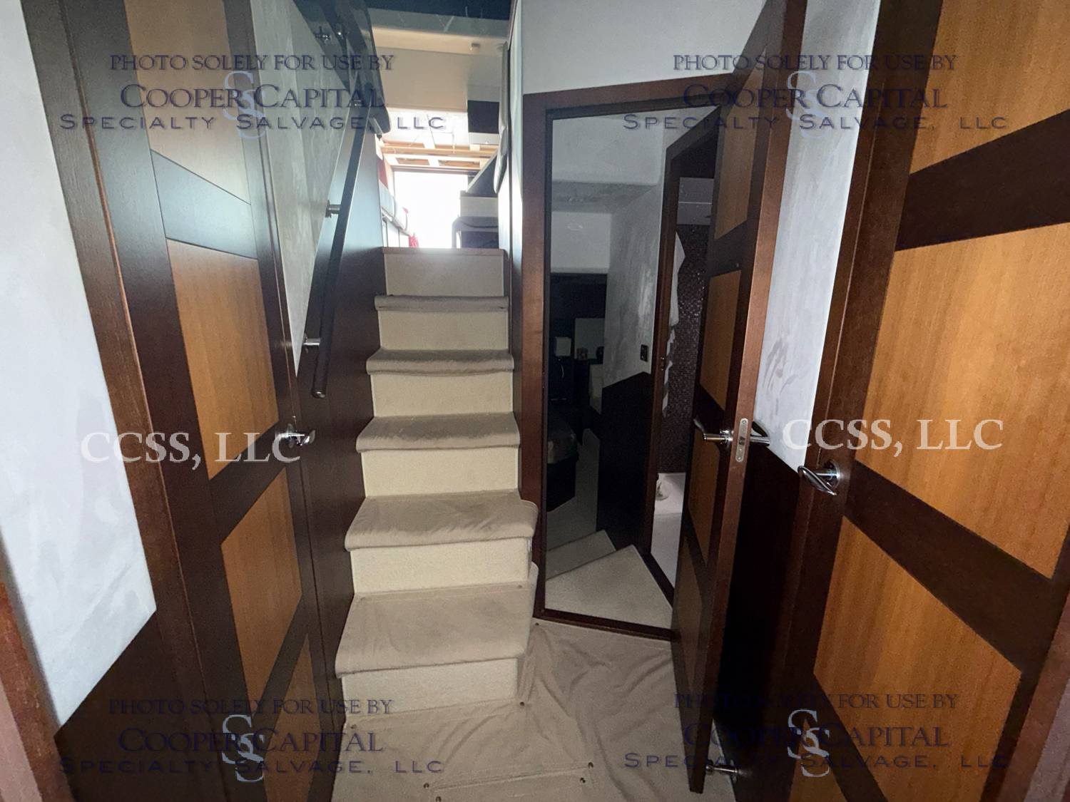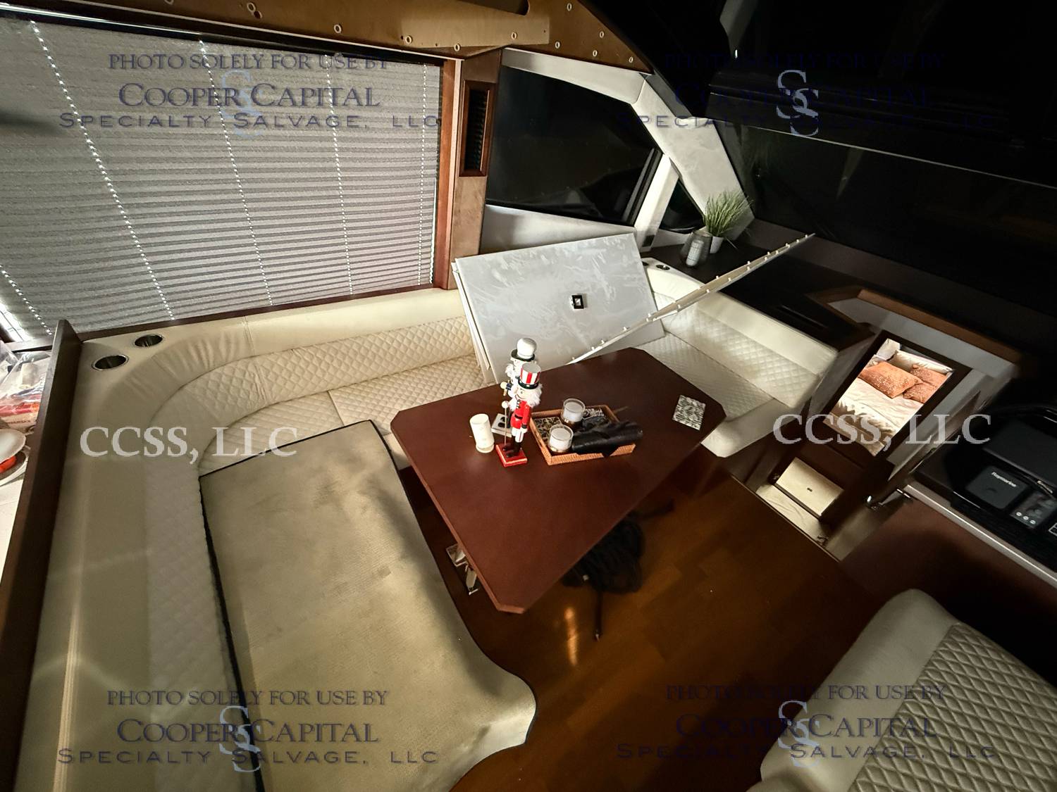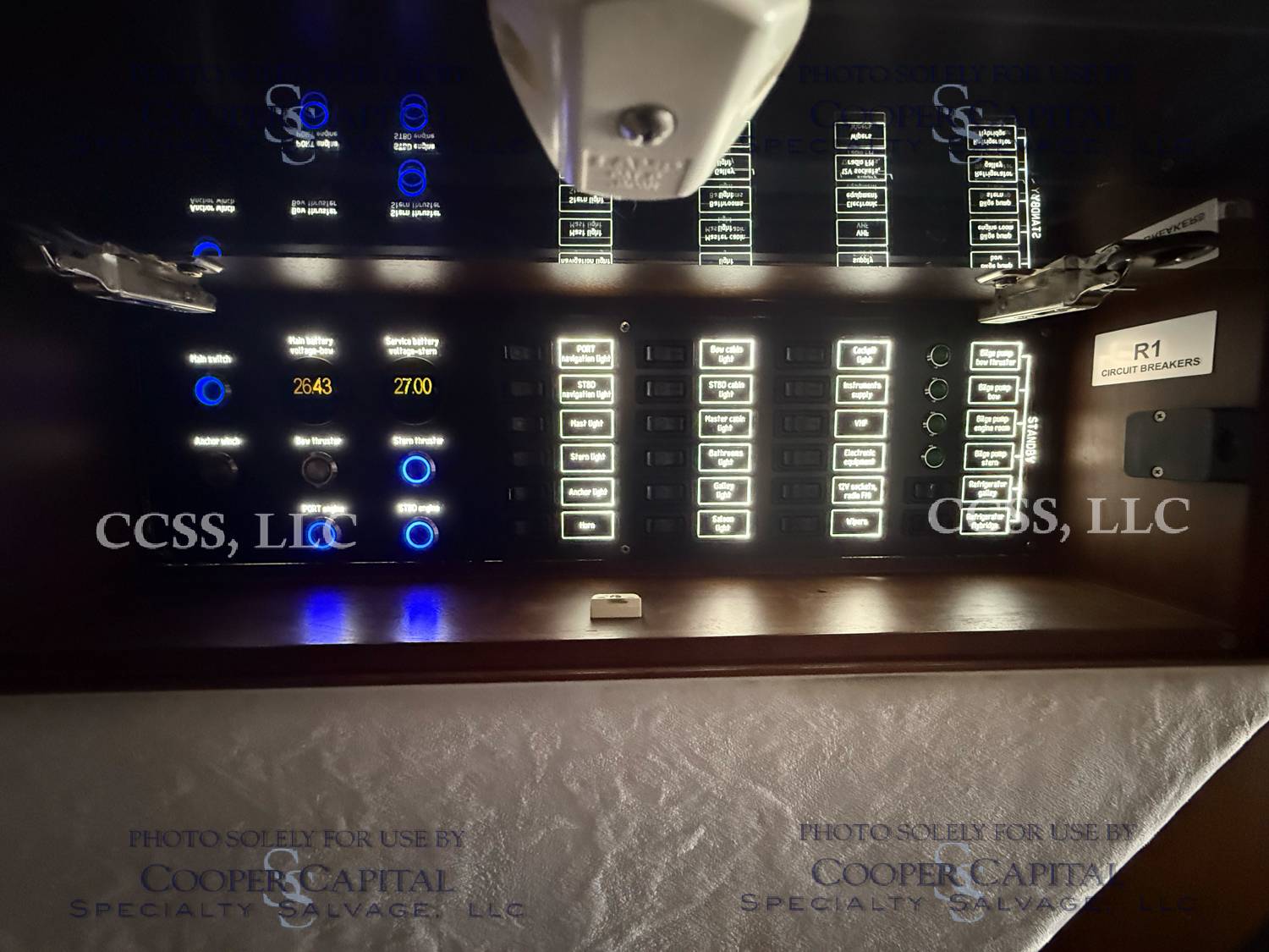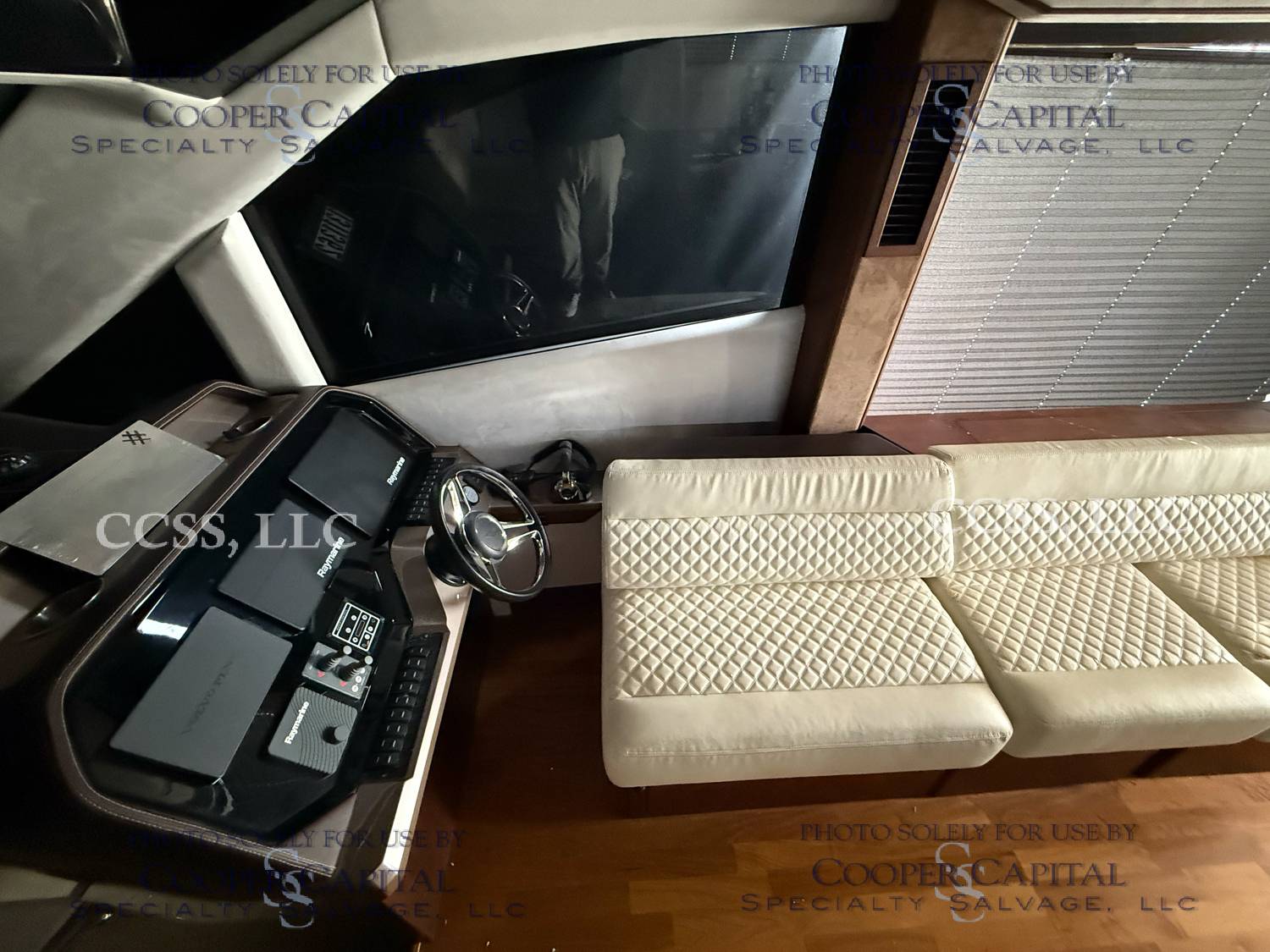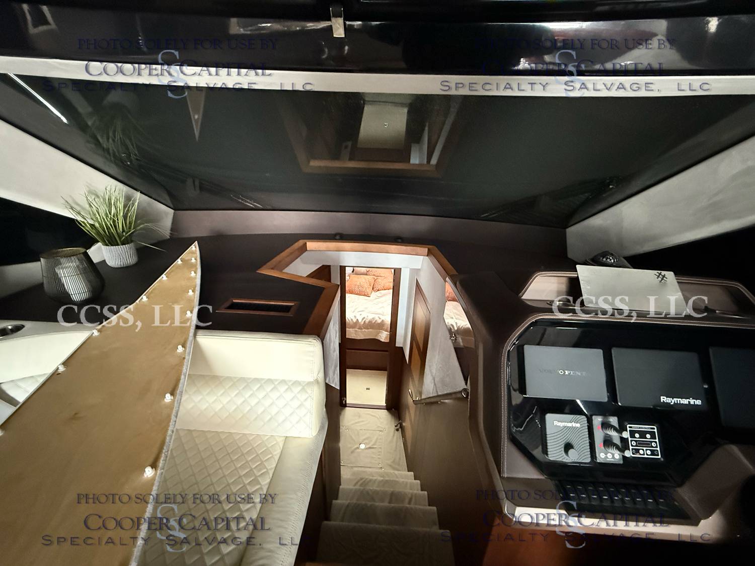 Vessel was struck from behind causing fiberglass damage to the stern and swim platform. Please inspect the vessel to determine the full extent of the damage. There is no reason to believe the engines will not run.
