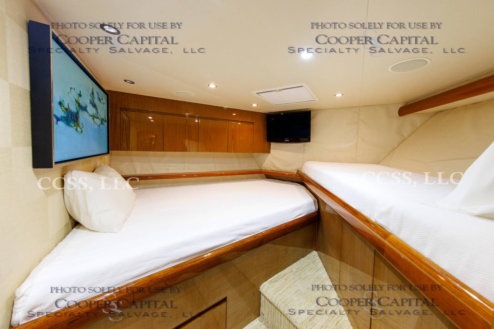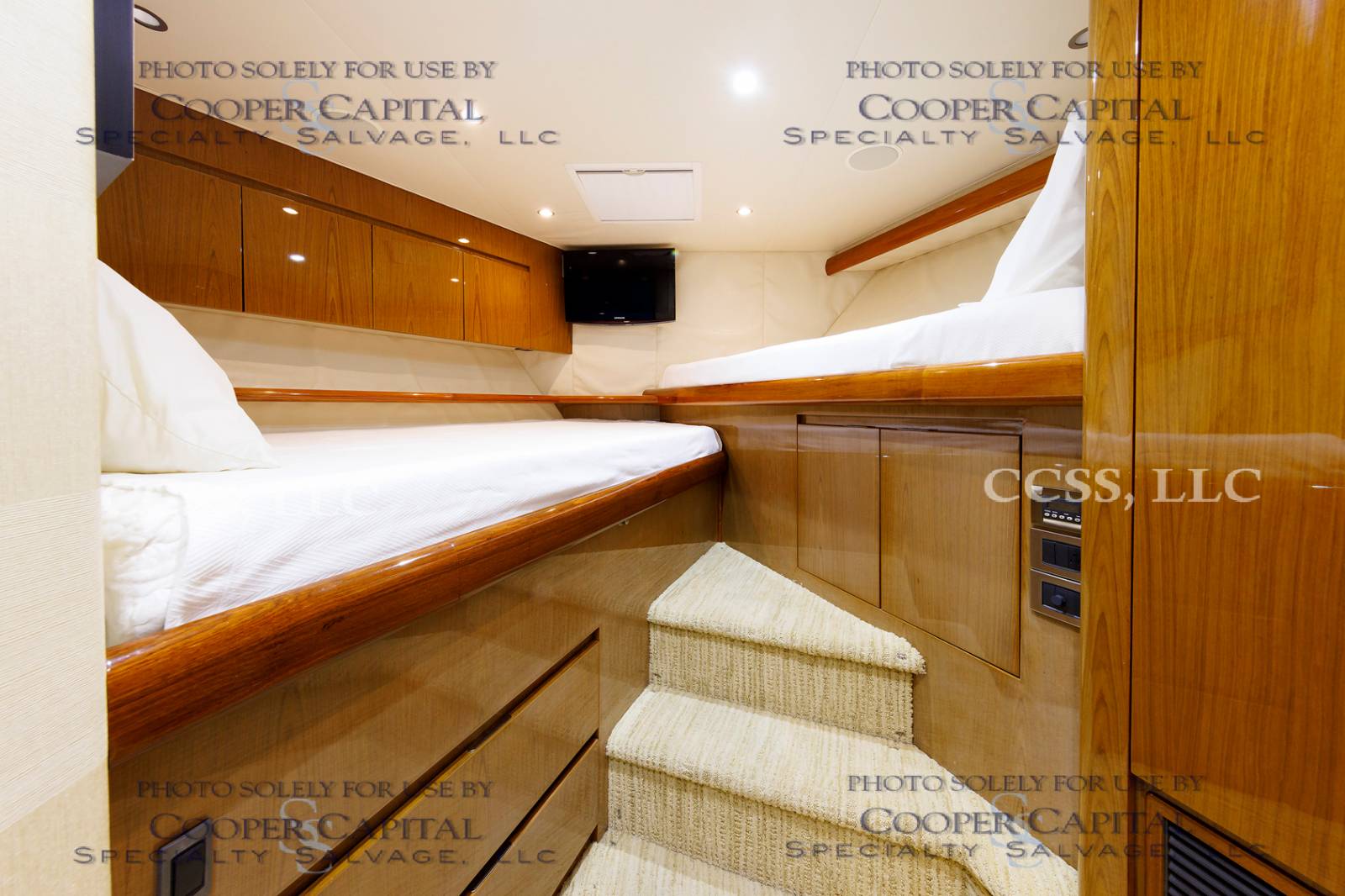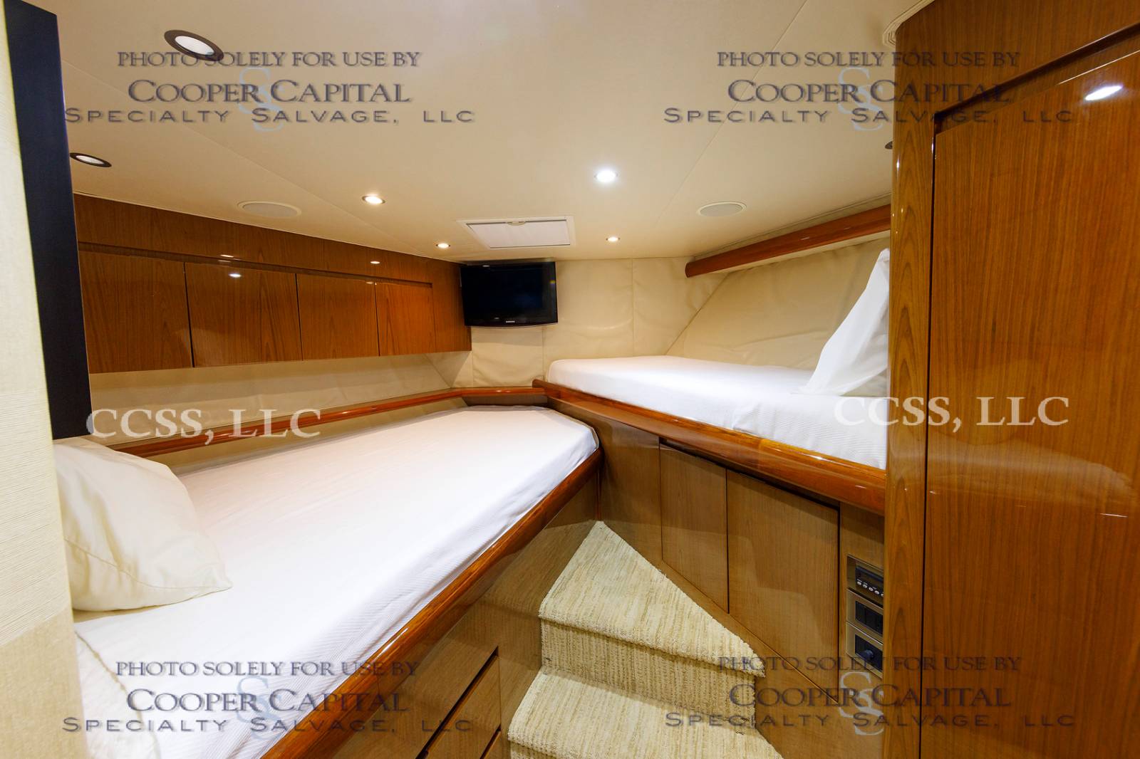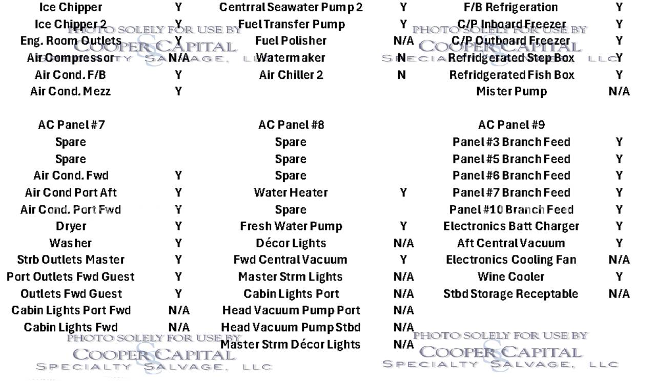 Vessel was struck by lightning and a negotiated settlement was reached with the owner as a result of the length of time it would take to repair the vessel. In the meantime, CCSS, LLC has been able to repair many of the systems affected by the lightning strike. About 75% of the systems prove operable and some parts are on order to prove more. Please see photos and videos of most of the systems that are operable. The octoplex system is currently being repaired should be almost completely operable in the coming weeks. Parts were ordered for the seakeeper and will arrive about the same time as octoplex. Please see video of the engines running.Please call Ron at 860-227-3803 to make appointment to view vessel. Boat is in Palm Beach area. INSPECTIONS WILL NOT BE PERMITTED WITHOUT APPOINTMENT. Updated Electronics Suite New paint New cushions All new ultra-leather in salon and bridge Interior bright work (many panels redone)