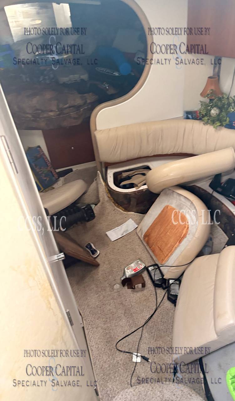 Vessel submerged in its slip. Engines, electrical, and soft goods are water damaged. The engines are reported to be locked.