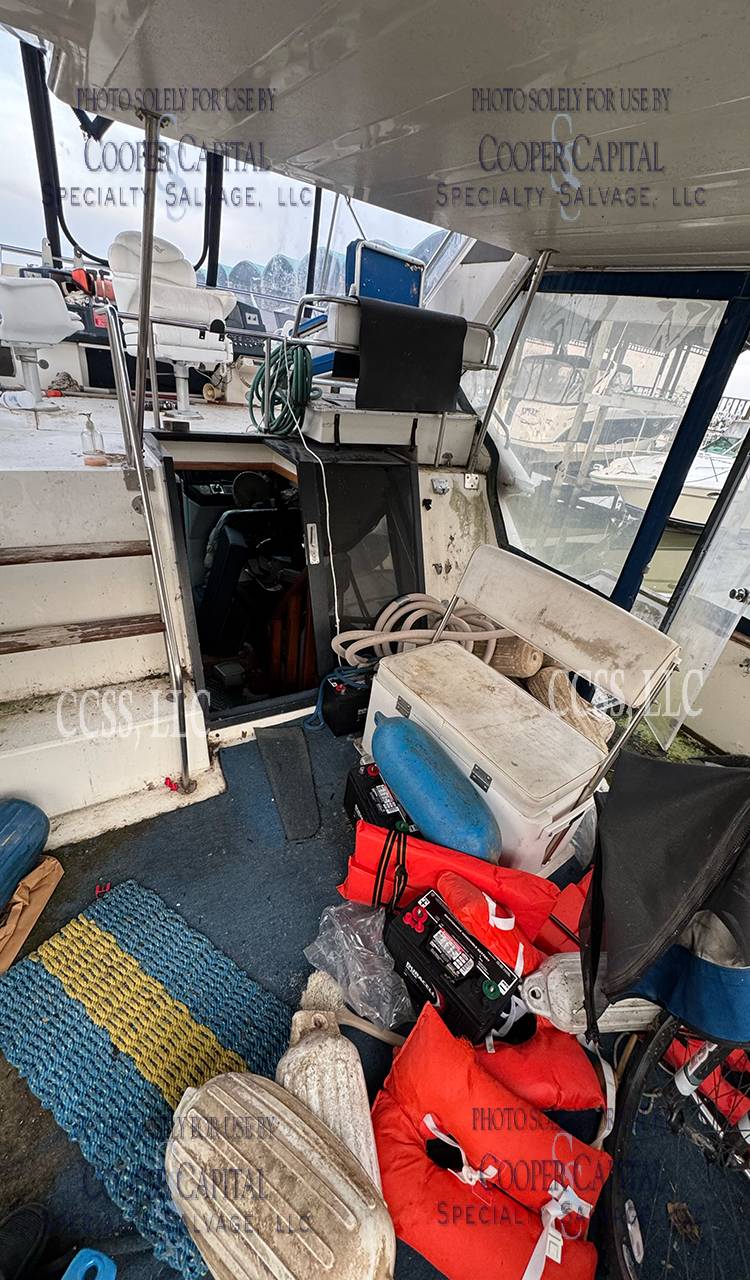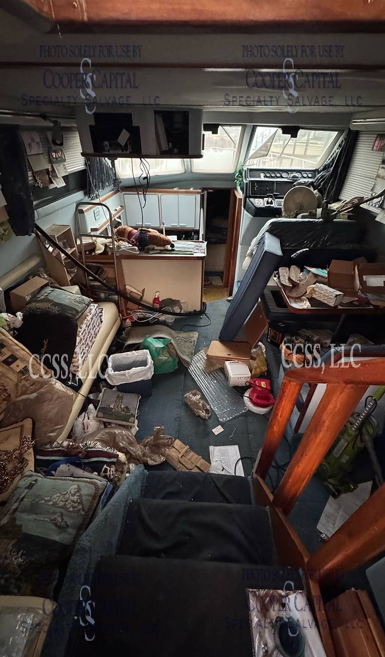 Vessel submerged damaging the engines, electrical, and soft goods. The engines were not preserved and are reported to be locked. Vessel must be removed by water, haul out and dismantle for over the road transport is not an option.