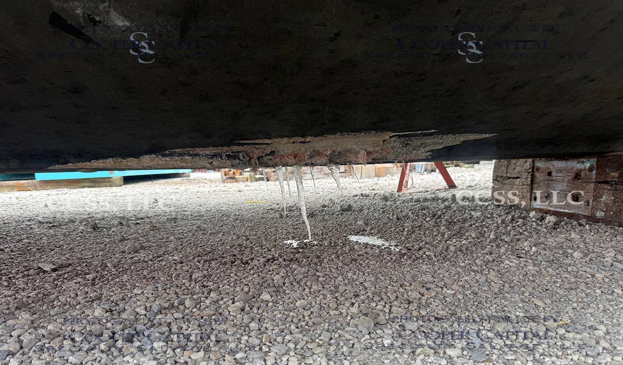Vessel ran onto rocks causing damage to the hull bottom and lower units. The engines were not winterized and are frozen.