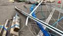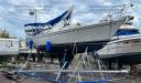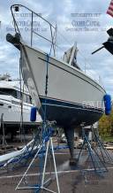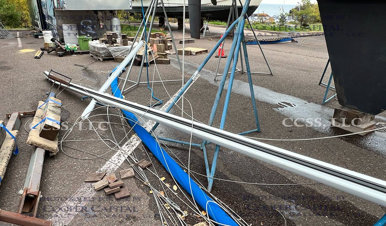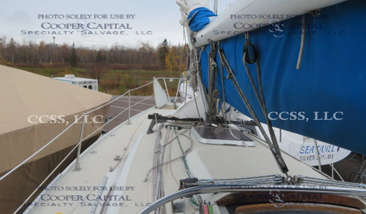 Vessel was being hauled for winter storage when a block of wood the boat was on split and the boat fell on it's side. There is no reason to believe the engine will not run. Boat is blocked in for the winter, you will not be able to pick it up until April.