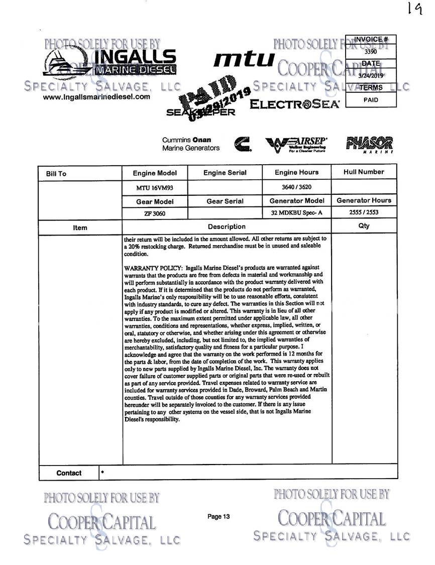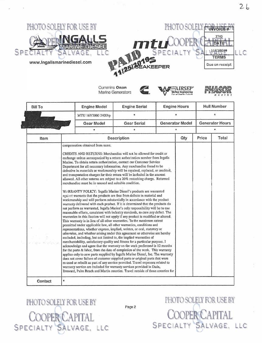 • Engine Make - Mtu M93