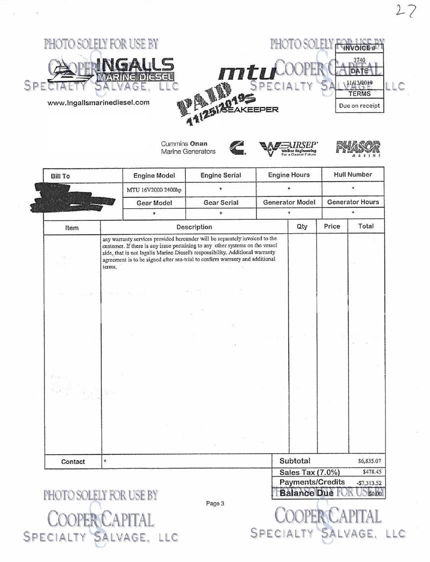 **In the event the integrity of the hull is compromised, per some state laws you may receive a title branded "Hull Damage" or "Salvage"**