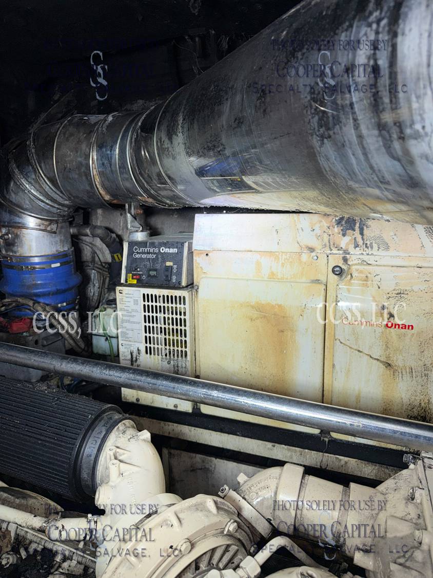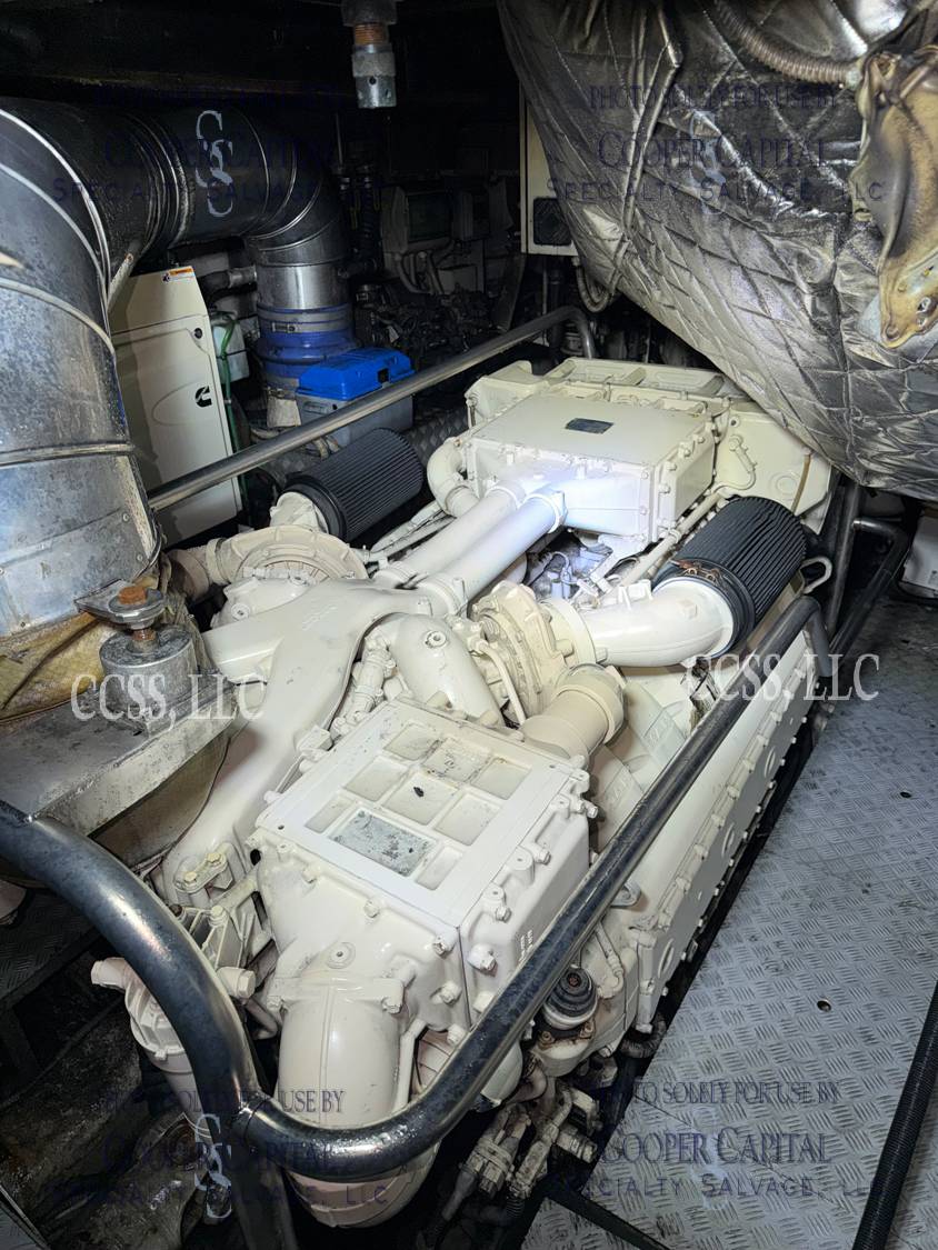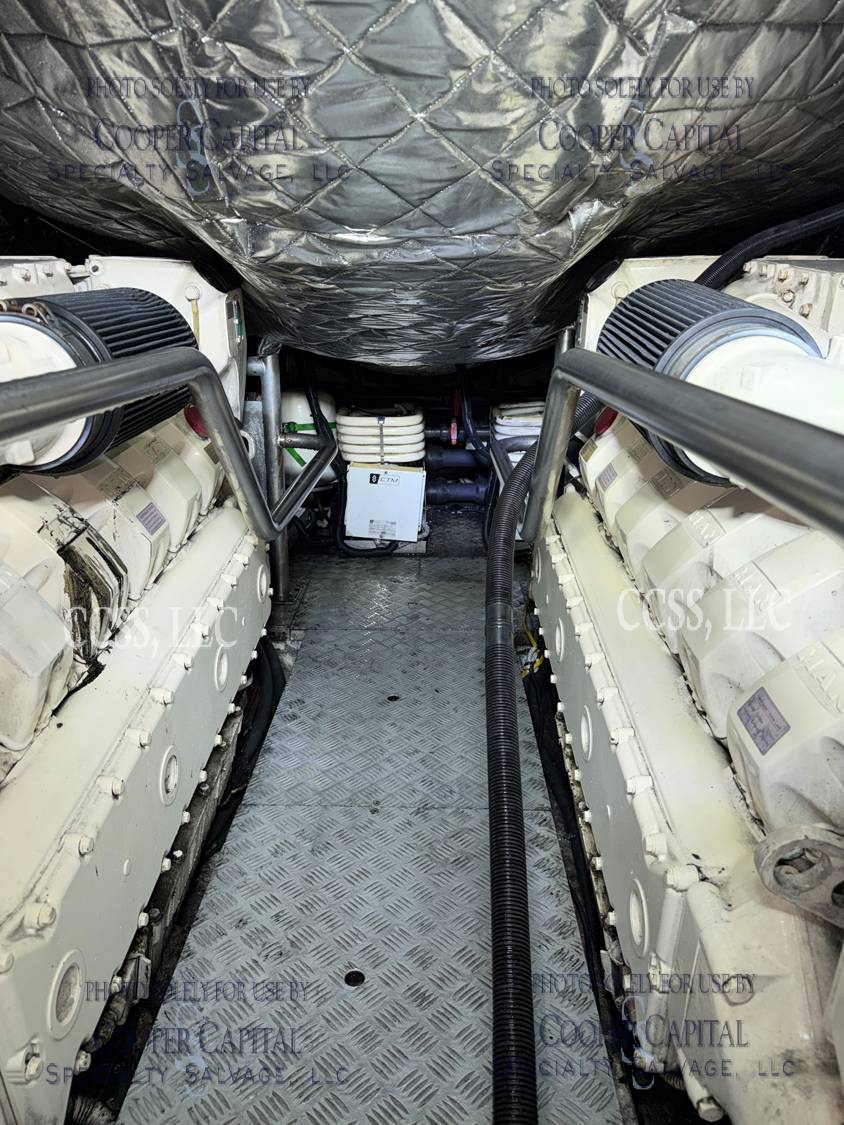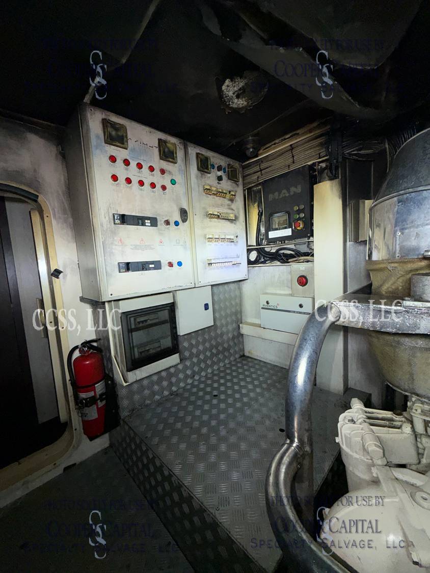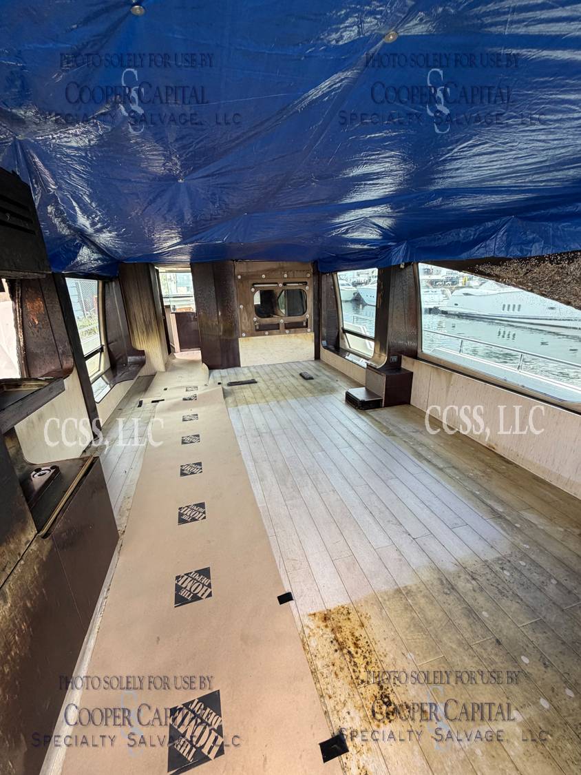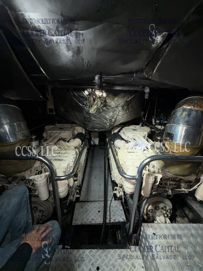 Vessel sustained damage as a result of a fire in the main salon. Vessel subsequently submerged. There is heat and smoke damage throughout. Vessel was cleaned. Engines, electrical and soft goods are salt water damaged. No preservation efforts were taken to the engines.