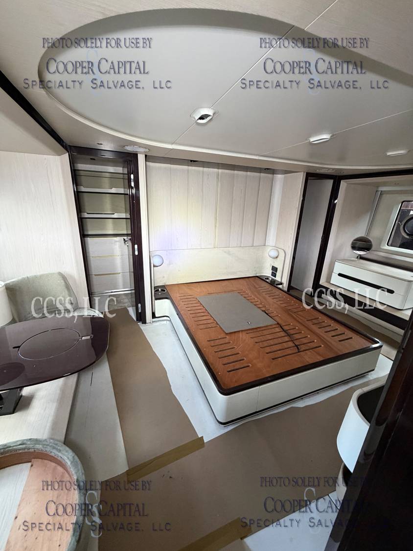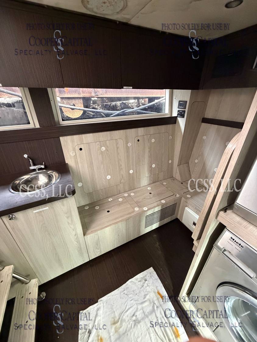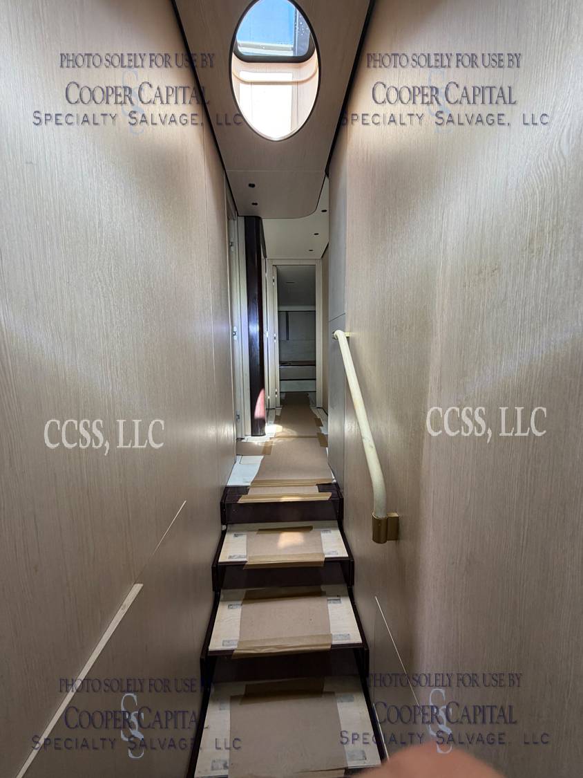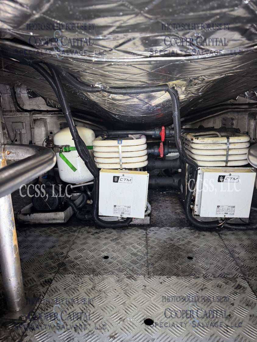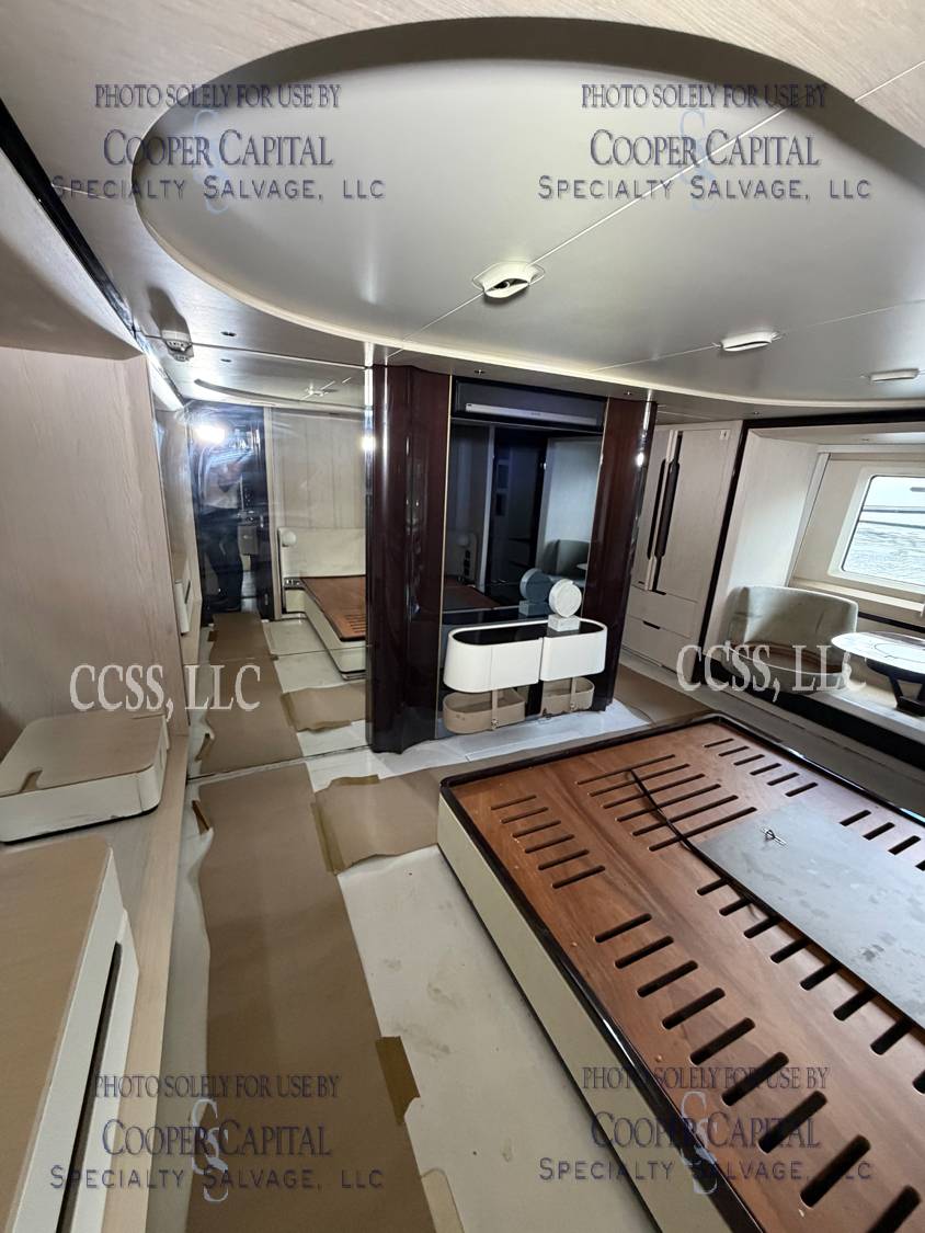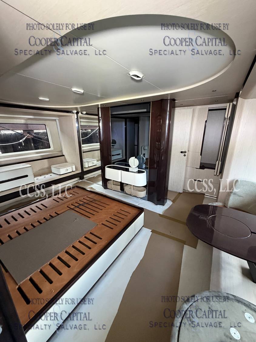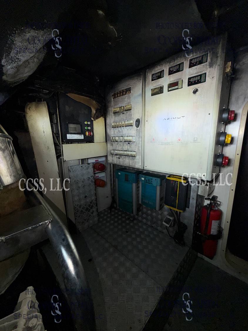 Vessel sustained damage as a result of a fire in the main salon. Vessel subsequently submerged. There is heat and smoke damage throughout. Vessel was cleaned. Engines, electrical and soft goods are salt water damaged. No preservation efforts were taken to the engines.
