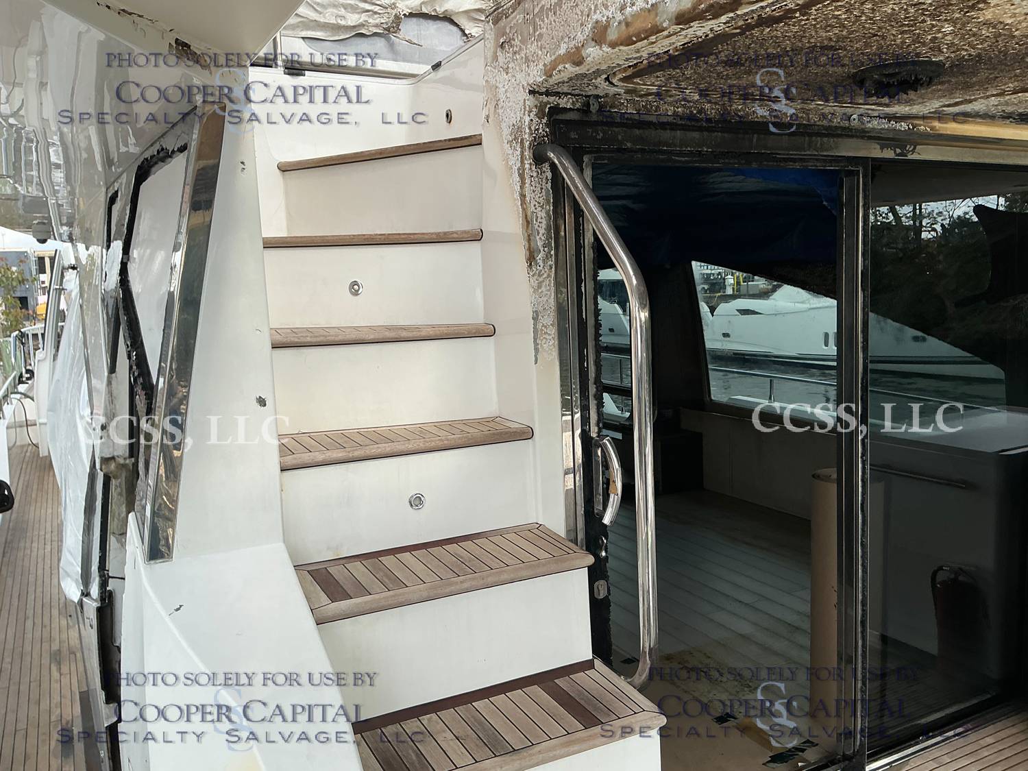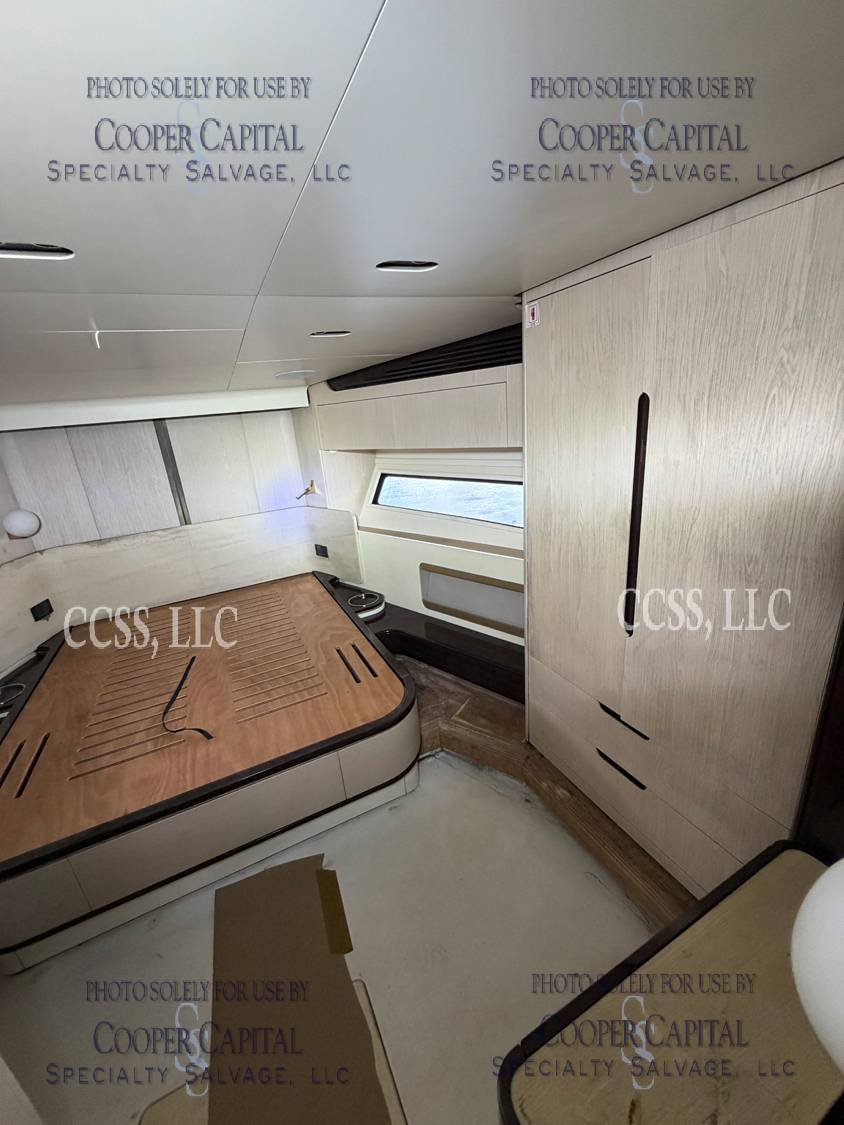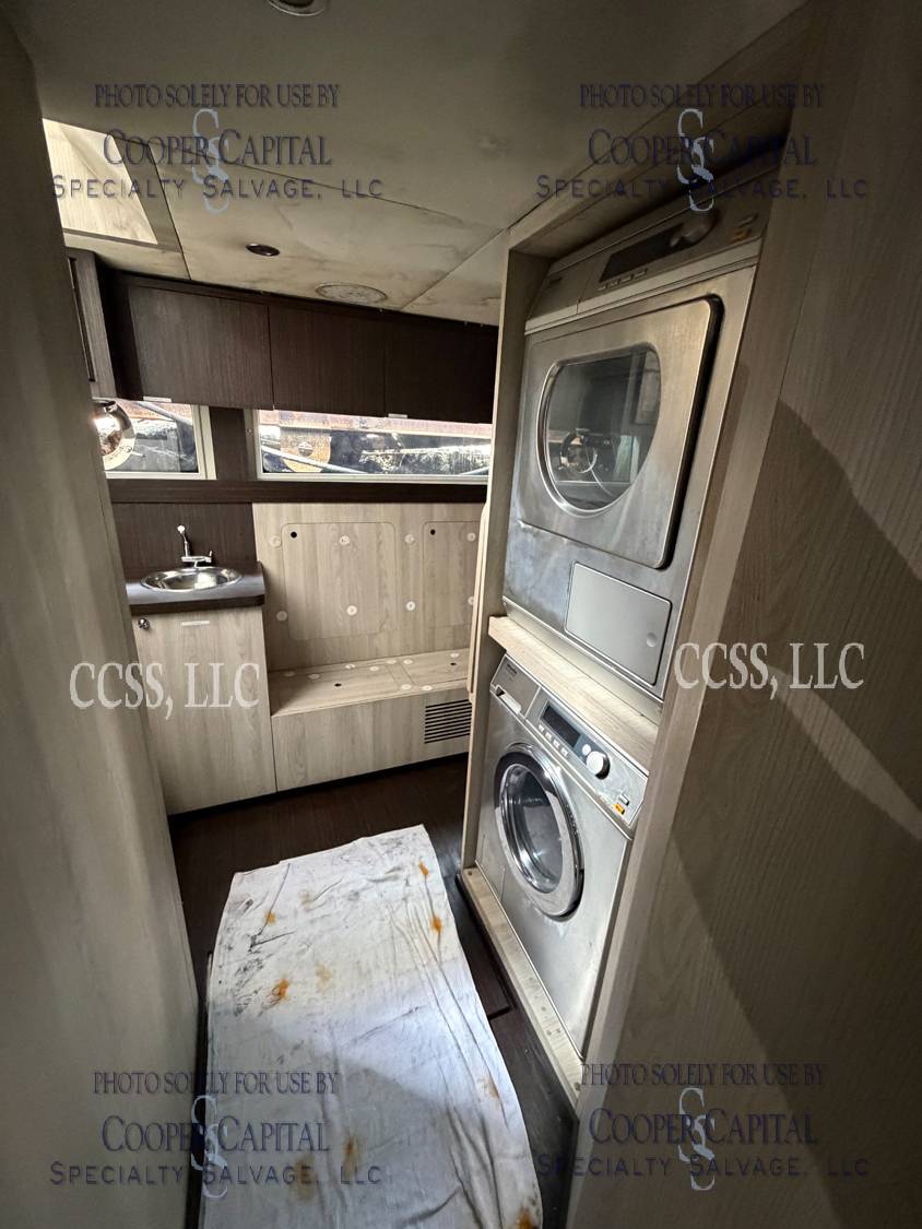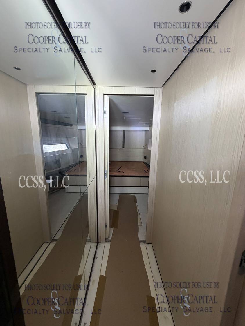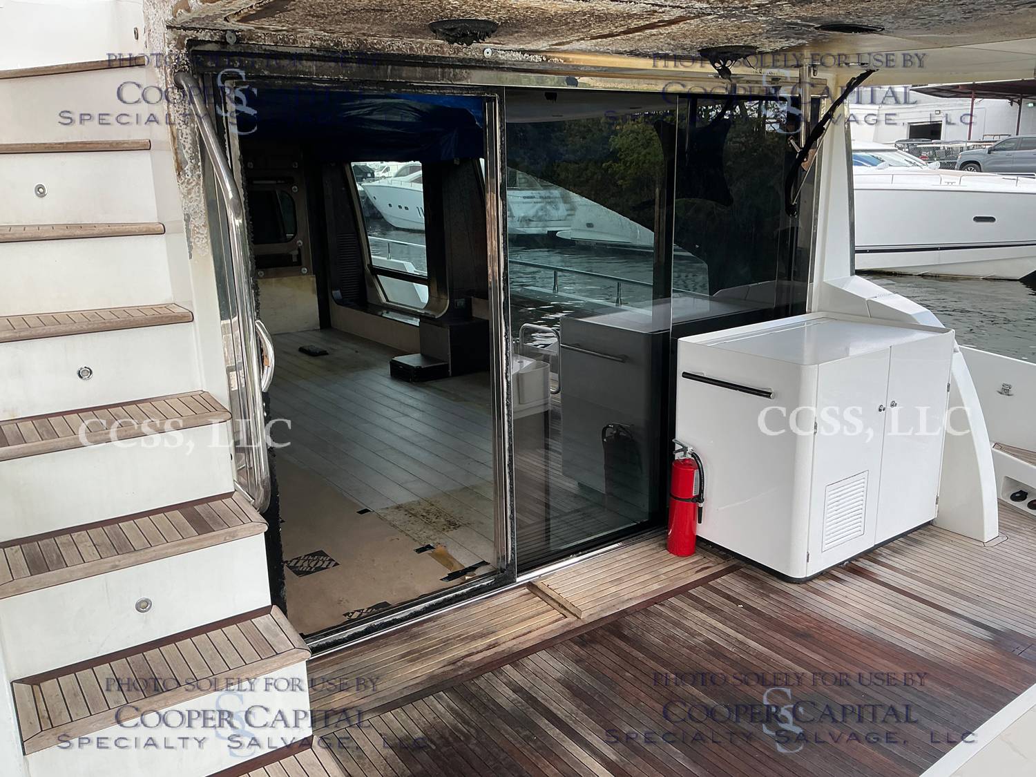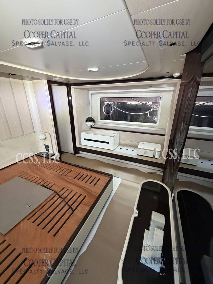 Vessel sustained damage as a result of a fire in the main salon. Vessel subsequently submerged. There is heat and smoke damage throughout. Vessel was cleaned. Engines, electrical and soft goods are salt water damaged. No preservation efforts were taken to the engines.