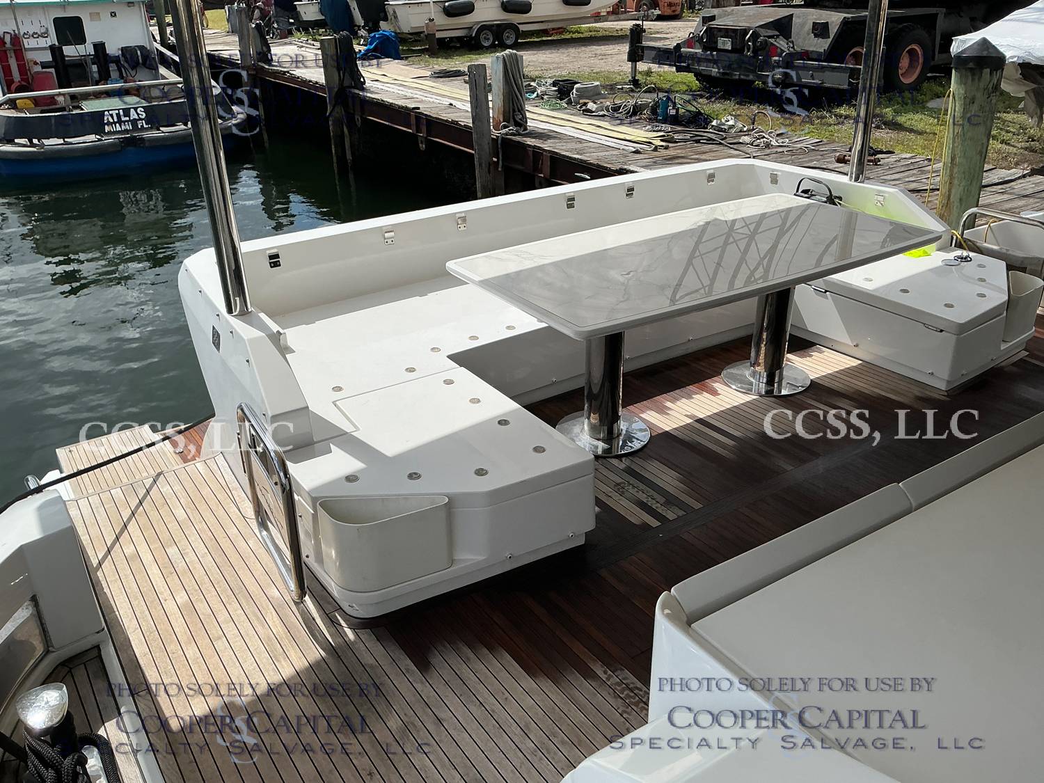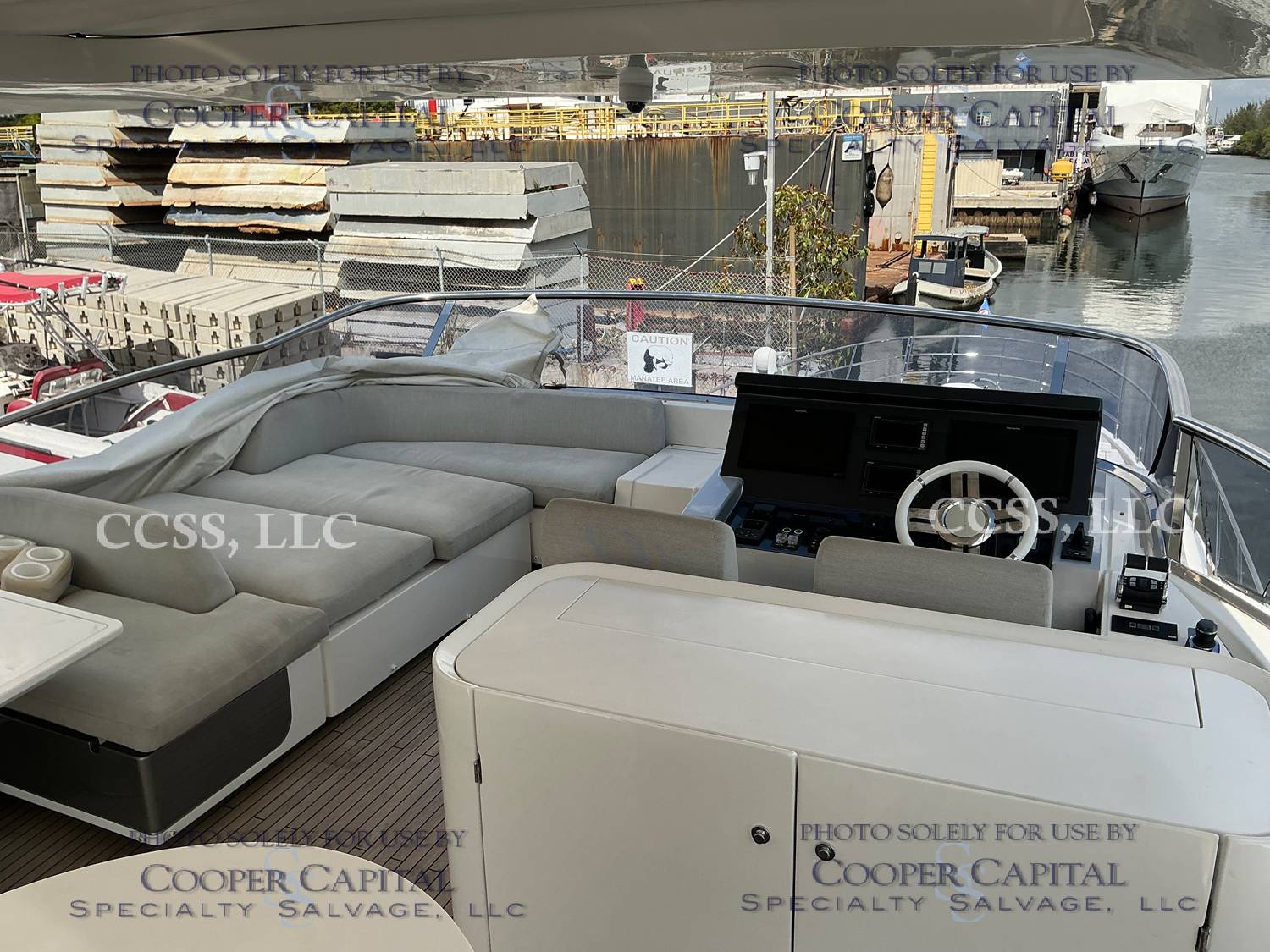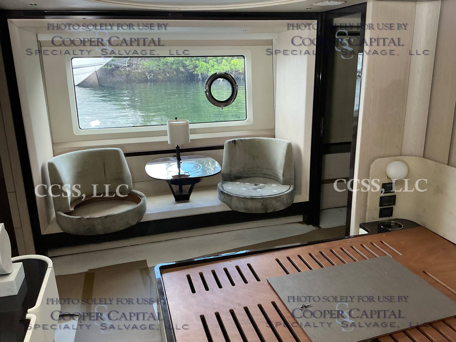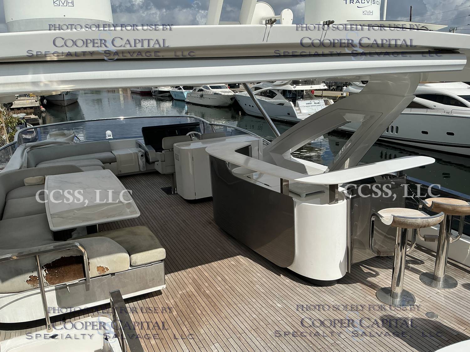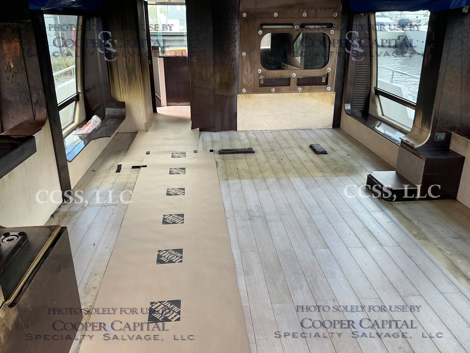Vessel sustained damage as a result of a fire in the main salon. Vessel subsequently submerged. There is heat and smoke damage throughout. Vessel was cleaned. Engines, electrical and soft goods are salt water damaged. No preservation efforts were taken to the engines.