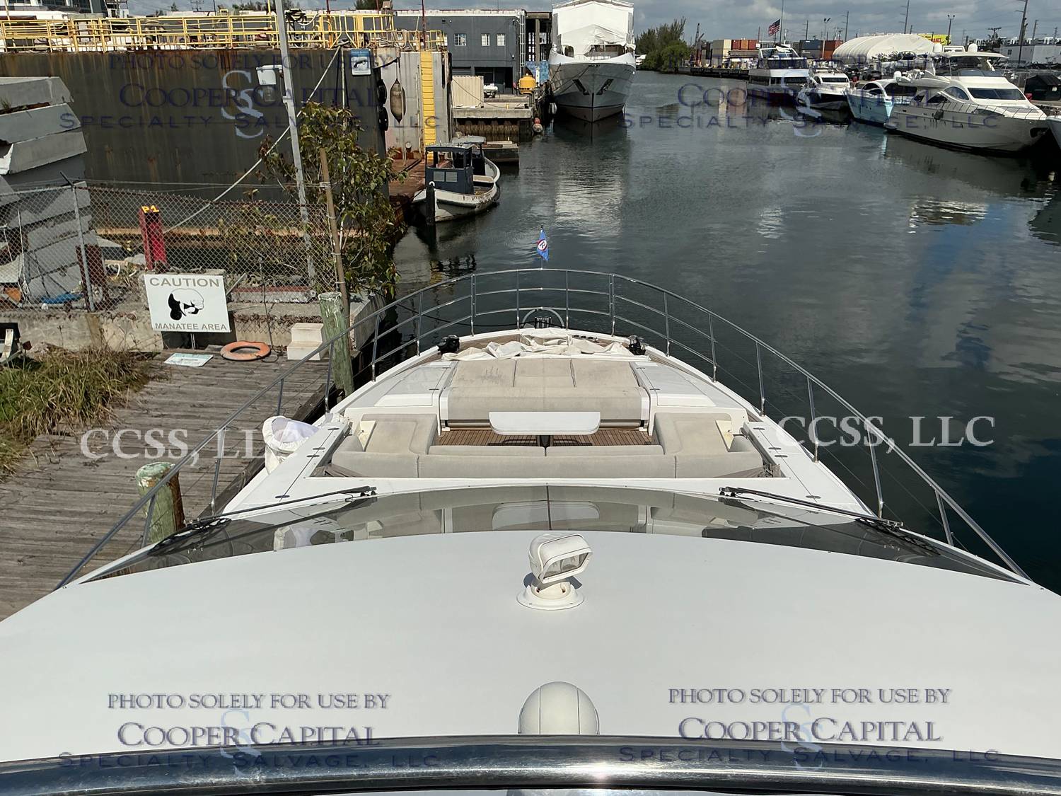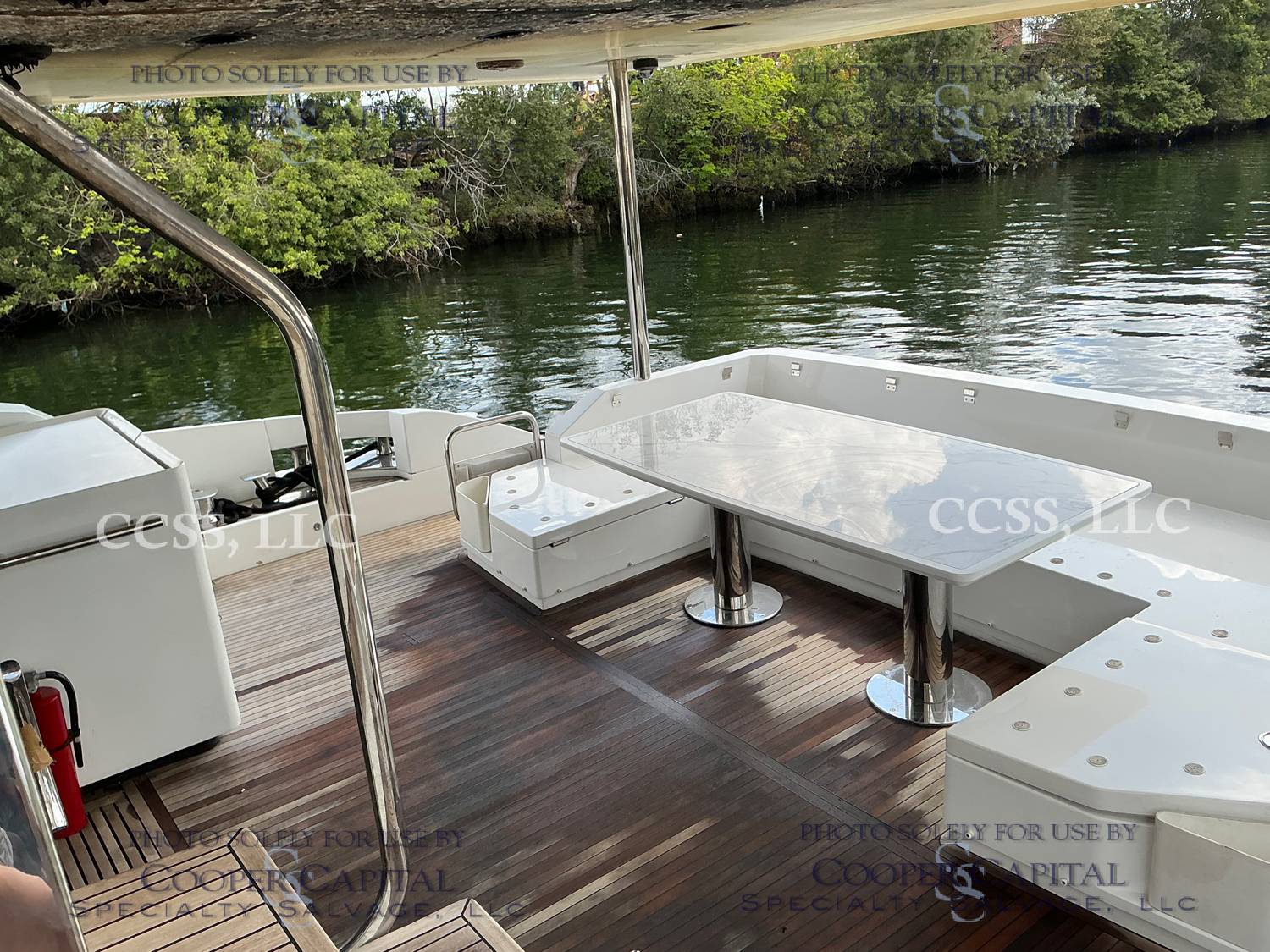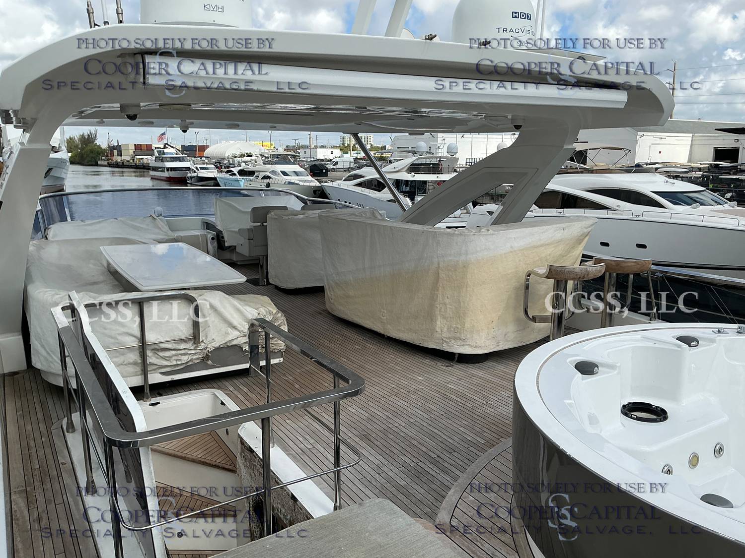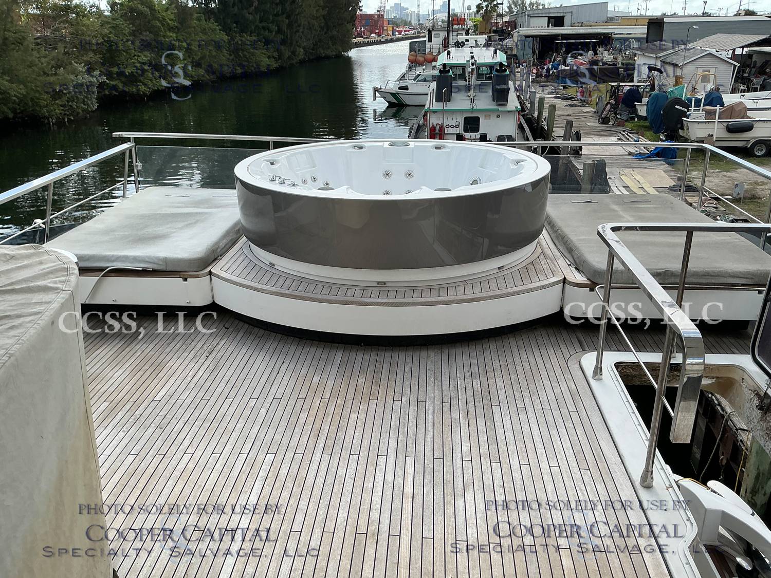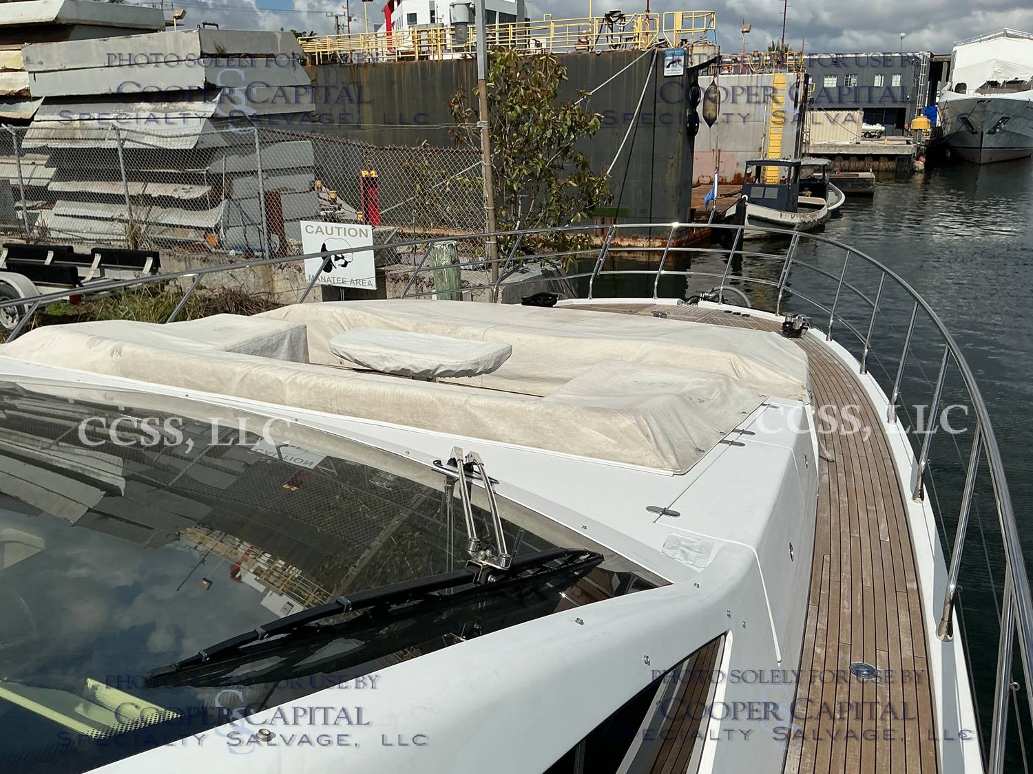Vessel sustained damage as a result of a fire in the main salon. Vessel subsequently submerged. There is heat and smoke damage throughout. Vessel was cleaned. Engines, electrical and soft goods are salt water damaged. No preservation efforts were taken to the engines.