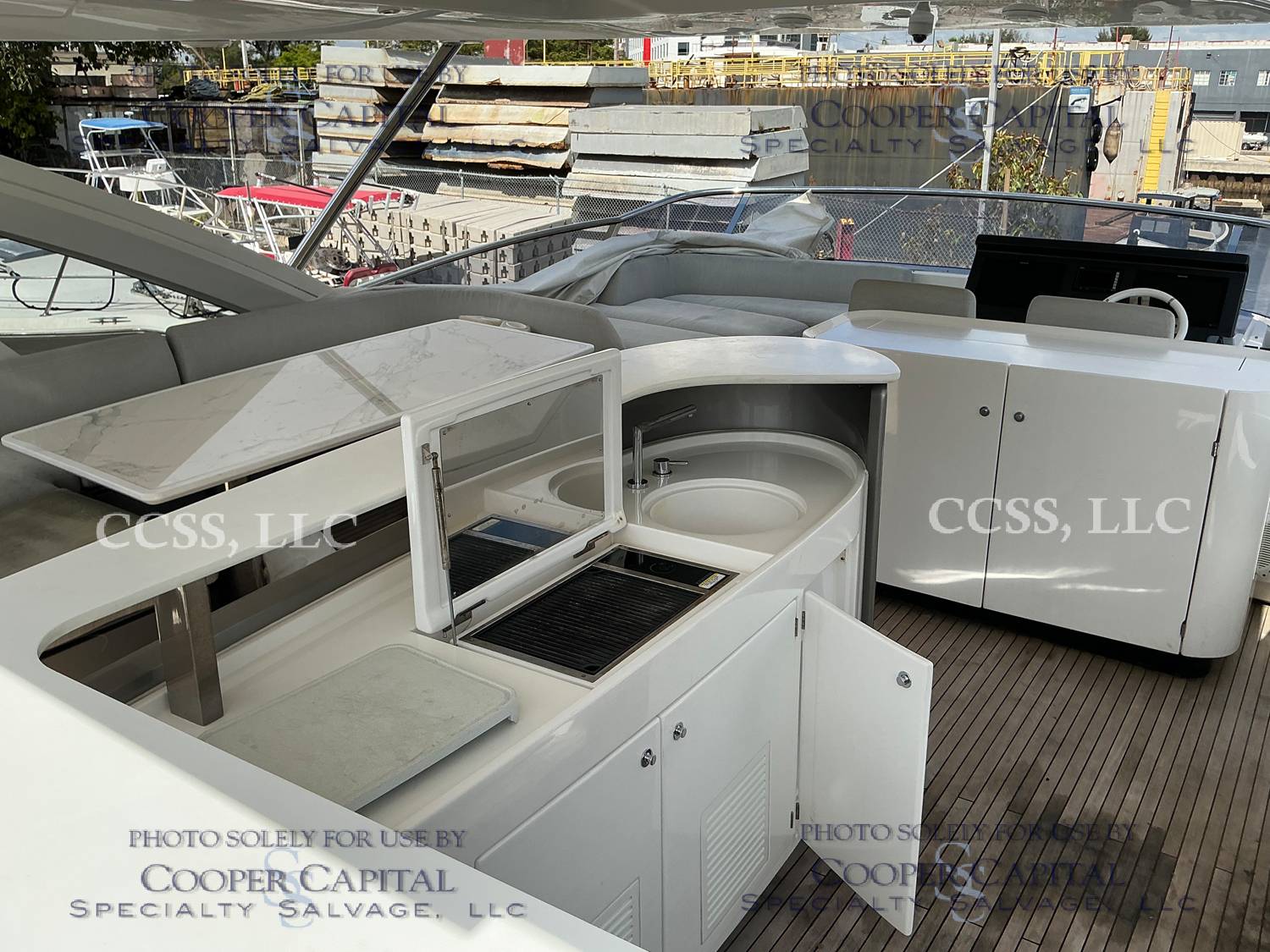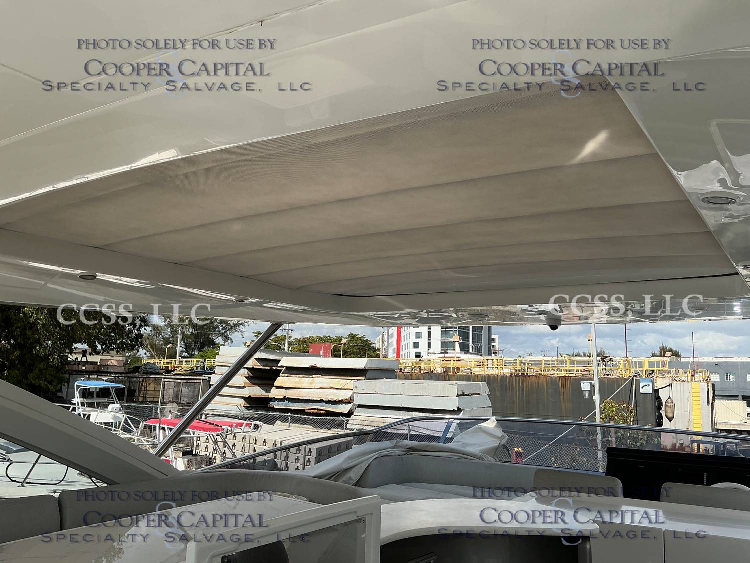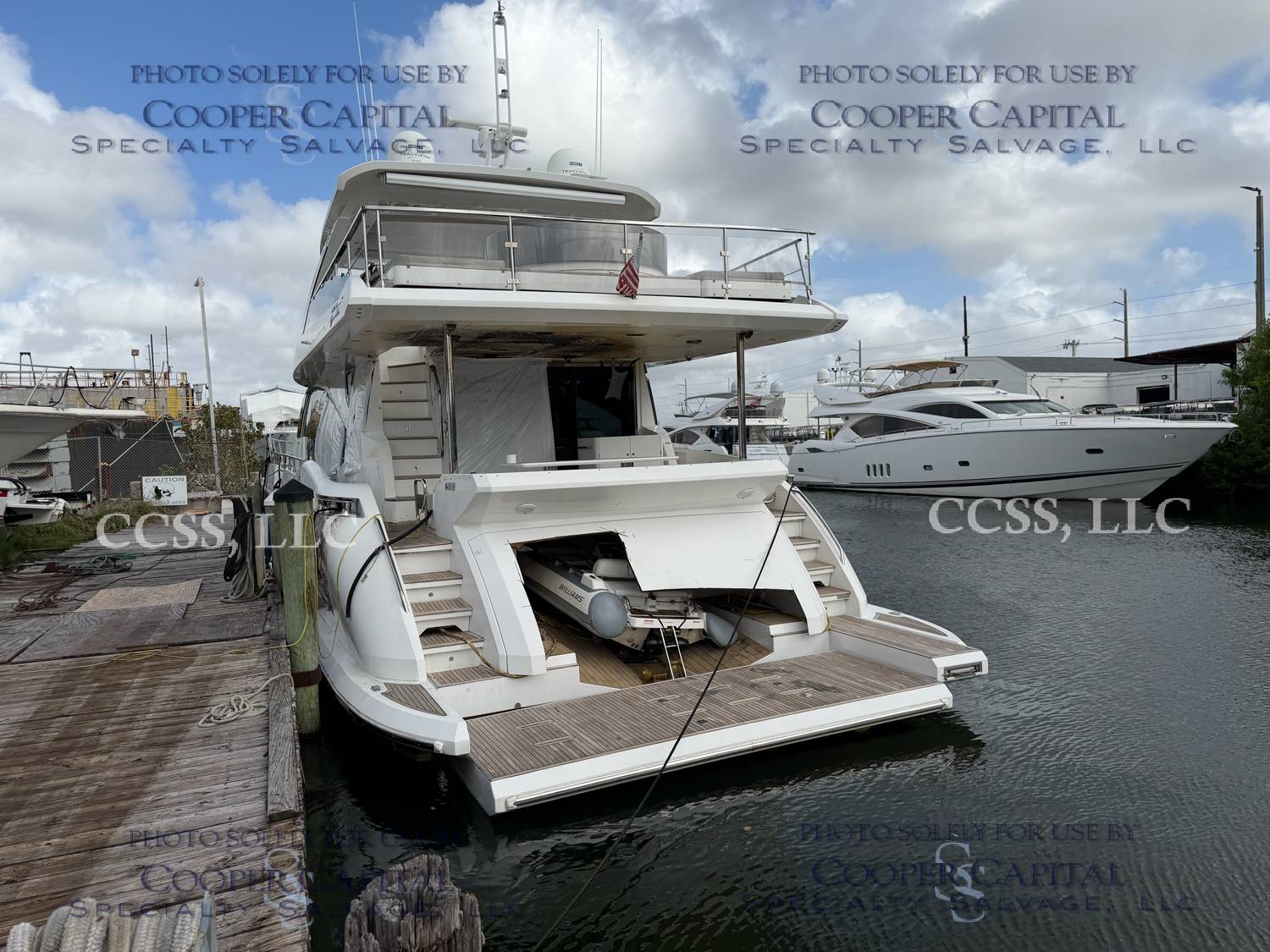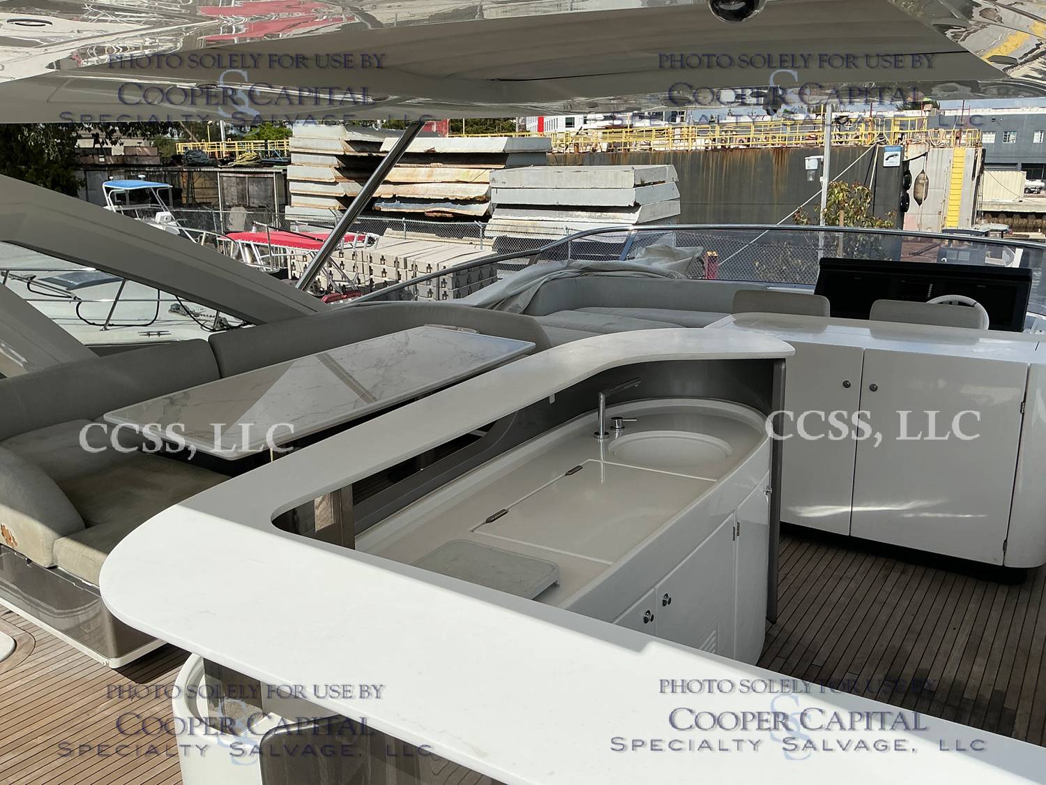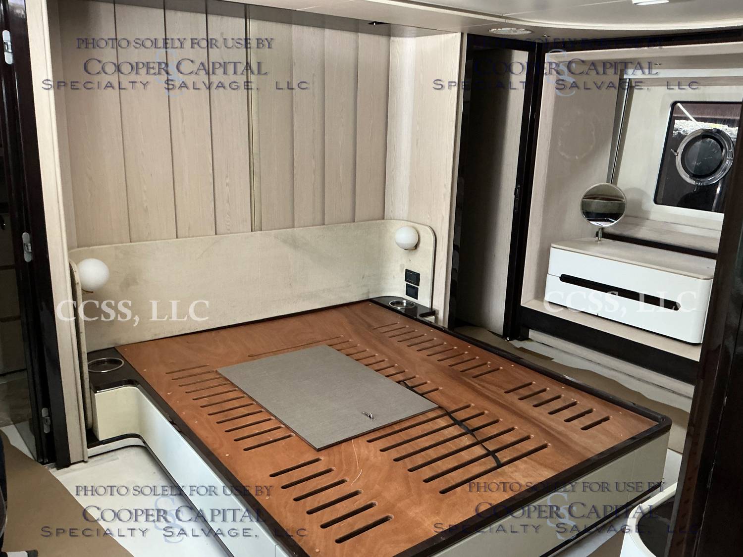 Vessel sustained damage as a result of a fire in the main salon. Vessel subsequently submerged. There is heat and smoke damage throughout. Vessel was cleaned. Engines, electrical and soft goods are salt water damaged. No preservation efforts were taken to the engines.