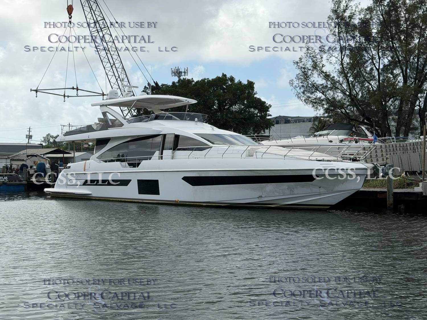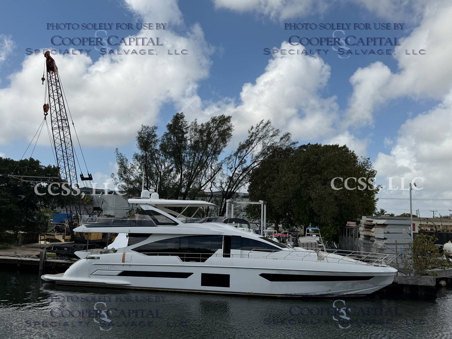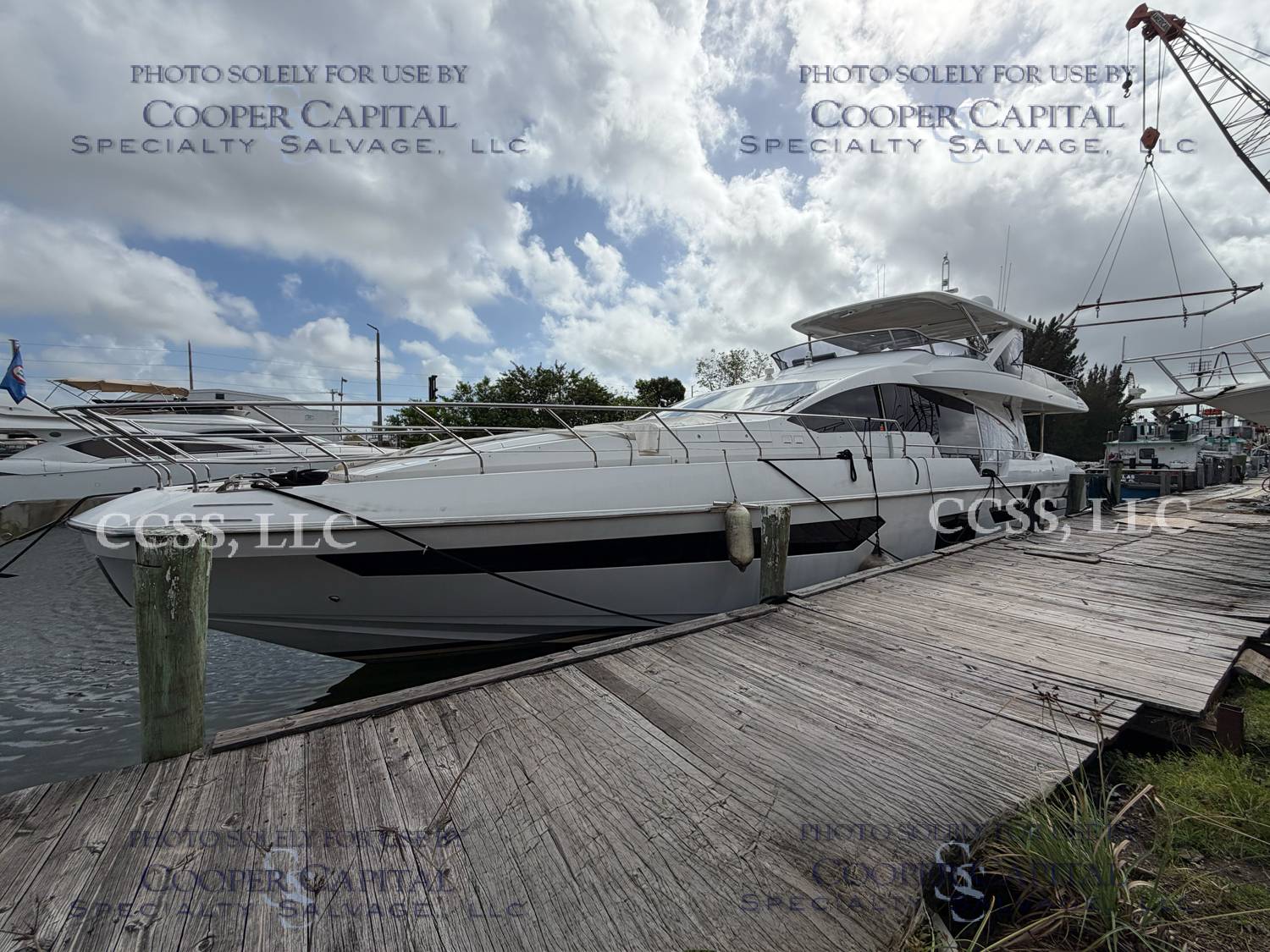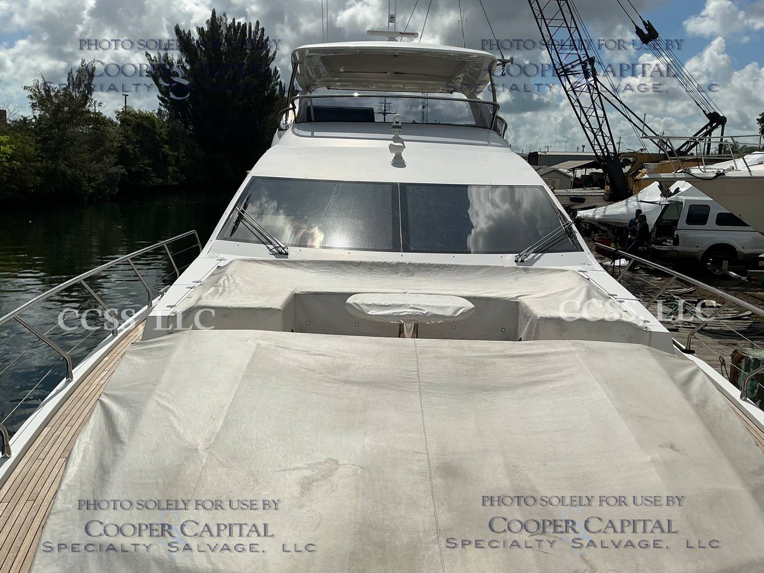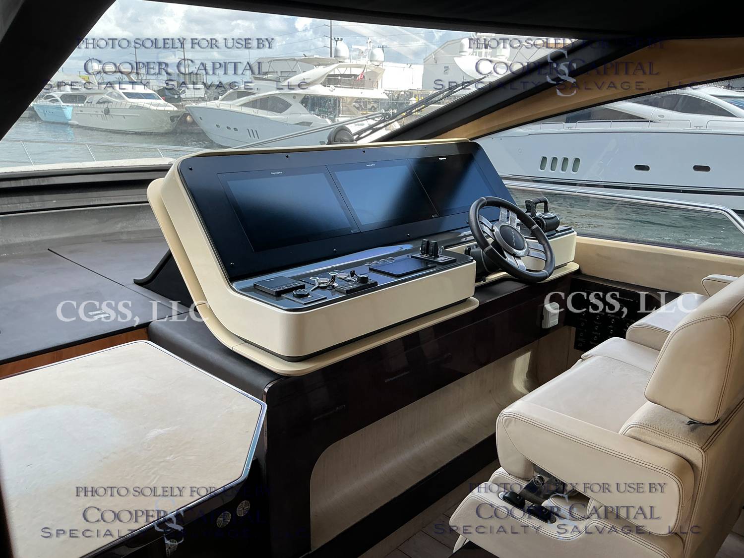 Vessel sustained damage as a result of a fire in the main salon. Vessel subsequently submerged. There is heat and smoke damage throughout. Vessel was cleaned. Engines, electrical and soft goods are salt water damaged. No preservation efforts were taken to the engines.