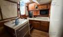 Ice and water buildup at the rear of the boat caused the vessel to sink while in the marina. The engines were not preserved and are reported to be locked.